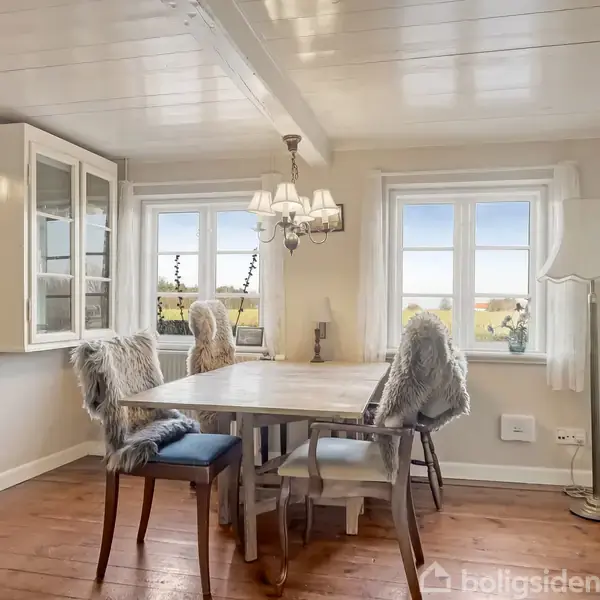 På Trousløkkevej 1 finder I denne særdeles charmerende ejendom, hvor klassiske detaljer og landlige omgivelser går hånd i hånd.Her er der skabt en helt særlig atmosfære med smukke plankegulve, elegante fyldningsdøre og fine messing-lyskontakter, som tilsammen understreger husets autentiske sjæl og charmerende udtryk.Boligen byder velkommen med en varm og hyggelig atmosfære. Opholdsstuen fremstår med synlige bjælker, som giver huset karakter og charme, og spisestuen, ligeledes med synlige bjælker