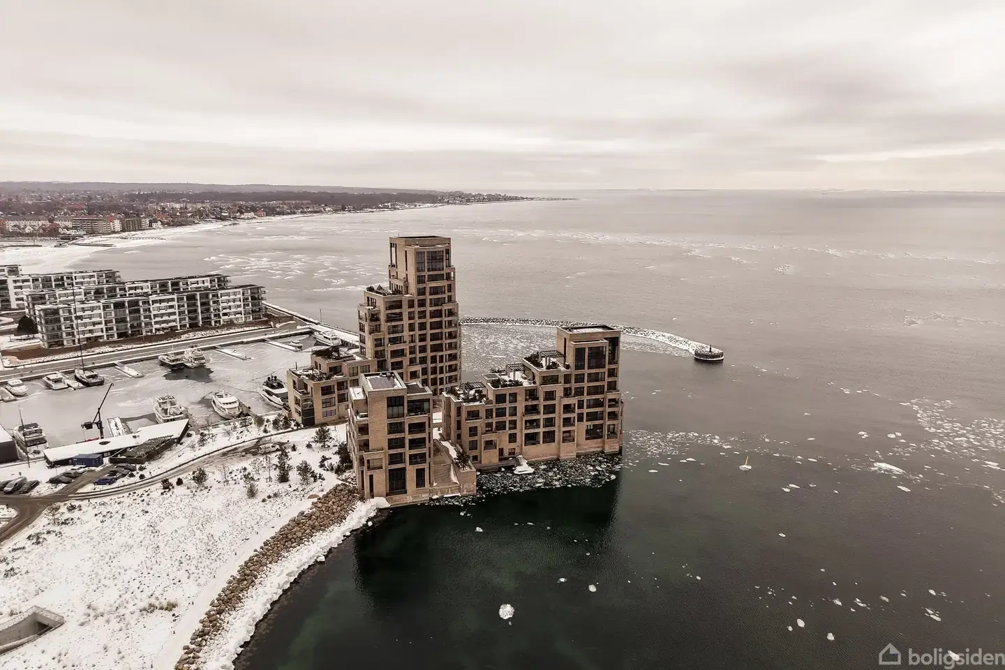 NÅR VANDET BLIVER EN DEL AF HVERDAGENDer er boliger, der giver plads. Og så er der boliger, der giver noget tilbage. Her på 2. sal – med 197 m² fordelt på tre værelser, stort køkken-alrum, to badeværelser og tre toiletter – er det ikke kun rummene, der definerer hjemmet. Det er måden, de åbner sig mod omgivelserne. Mod nord har du et frit kig ned i havnen og kyststrækningen. Mod syd ligger Svanemøllebugten for dine fødder – med solen, der følger dig. Det er en bolig, hvor udsigten ikke blot er n