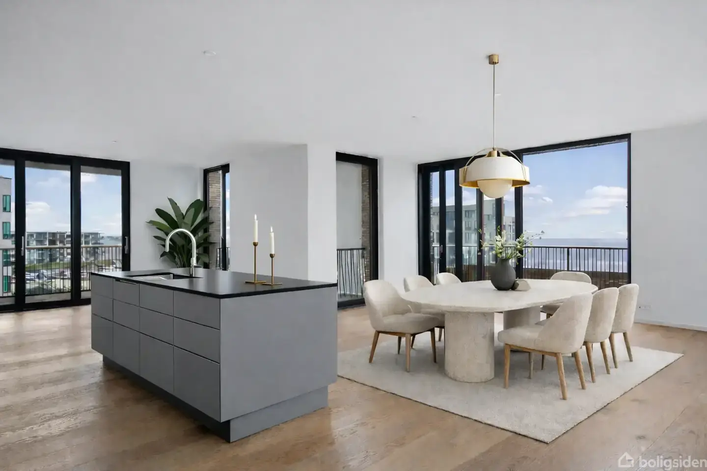 Endnu et kysthus har taget sin form på den sydlige spids af indsejlingen til Tuborg Havn og Svanemøllebugten i Hellerup. Ja, midt i et kuperet, vildt englandskab lige ned til Øresund adresseret til liebhavere og feinschmeckere. Bo inde og ude på toppen i en penthouse med den vildeste udsigt. Bo i stuetagen med forskudt plan og et par trin ned til Øresund. Vælg din lejlighed i Tuborg Strandeng og få det tætteste liv på vandet med vild natur og biodiversitet i englandskabet. Nyd livet i lyse, åbne omgivelser med to til fire solfyldte tagterrasser eller balkoner. Her får man en udsigt over eng og sund, man ikke finder andre steder. Tuborg Strandeng er tegnet af den prisvindende tegnestue Lundgaard & Tranberg Arkitekter. Med arbejder som Tietgenkollegiet i Ørestad og Skuespilhuset, Havneholmen og Axel Towers har tegnestuen bekræftet sin internationale orientering. Kvaliteten af deres byggerier er umiskendelig, fuld af kontraster, stoflighed, sanselighed og narrativer. Akkurat som Tuborg Strandeng. Ikke 2 lejligheder er ens, alle er de forskellige i størrelse, pris og udsigt. Placeringen af Tuborg Strandeng forener Hellerup med København. Hellerup er byen med de lækre strøgbutikker, takeaway-butikker, restauranter, caféer, havnen, stranden, skoven og badeanstalten. København er metropolen, byen med restauranterne, metroen, kulturen med gallerierne, teatrene og de smukke parker og pladser. Tuborg Strandeng er nabo til shopping-centeret Waterfront med indkøb, wellness, restauranter og alt, hvad hjertet begærer i dagligdagen.