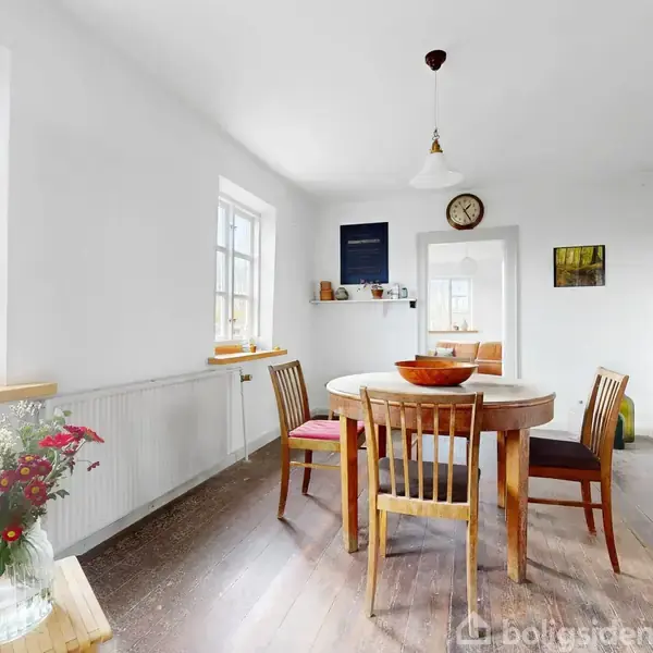Er du på udkig efter et unikt hjem, der kombinerer klassisk æstetik med plads til kreativ udfoldelse og familieliv? Denne charmerende, gamle landsbyskole i Terp, mellem Randers og Viborg, er det perfekte valg. Ejendommens Historie og Karakter: Opført i 1850 som skolebygning og restaureret med respekt for de oprindelige detaljer. Den klassiske røde murstensbygning har været i drift som skole frem til 1962 og er nu et unikt hjem med moderne komfort. Boligdelen: 180 m² med 5 værelser, stue, spisestue, køkken, bryggers og badeværelse. Fra den smukke gavldør træder man ind i en rummelig gang med adgang til bryggers, badeværelse og køkken. Spisestuen har store vinduer mod syd og adgang til sydvendt stue og værelse. På første sal findes tre lyse soveværelser. Atelier/Værksted: Den tidligere skolebygning på 70 m² er nu et ideelt atelier eller værksted med højt til loftet, store vinduer og en smuk høj smedejernsovn. Værkstedsbygning: 340 m² med tre store porte, klassiske vinduer og rødt tegltag, perfekt til en lille virksomhed, opbevaring eller kreative projekter. Terrasse og Udendørsarealer: Dejlig terrasse mod den lukkede have. Ejendommen omfatter en 2000 m² stor grund med mulighed for at tilkøbe en tilstødende 2400 m² stor køkkenhave. Energivenlig og Bæredygtig: Ejendommen har solceller og jordvarmeanlæg med energimærke C. Beliggenhed: Kun 100 meter til busstoppested med regelmæssige afgange til Randers. Busforbindelser til Ulstrup, Bjerringbro og Silkeborg hver time. 4,6 km til dagligvareindkøb i Ulstrup.