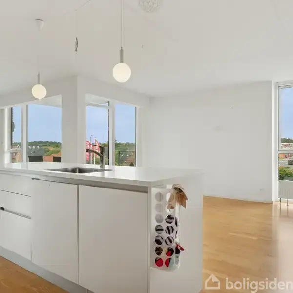 Moderne bolig med altan og naturskøn beliggenhed Denne lejlighed i Silkeborg henvender sig til jer, der søger en stor, moderne bolig med en central beliggenhed. Her er tale om en indflytningsklar og særdeles rummelig treværelses, hvor der er mulighed for at etablere endnu et værelse. Lejligheden suppleres af en skøn, overdækket altan, der er af en anseelig størrelse. Derudover er der en hyggelig lille altan hvor morgensolen kan nydes. I bosætter jer på anden sal i et byggeri, som er opført i