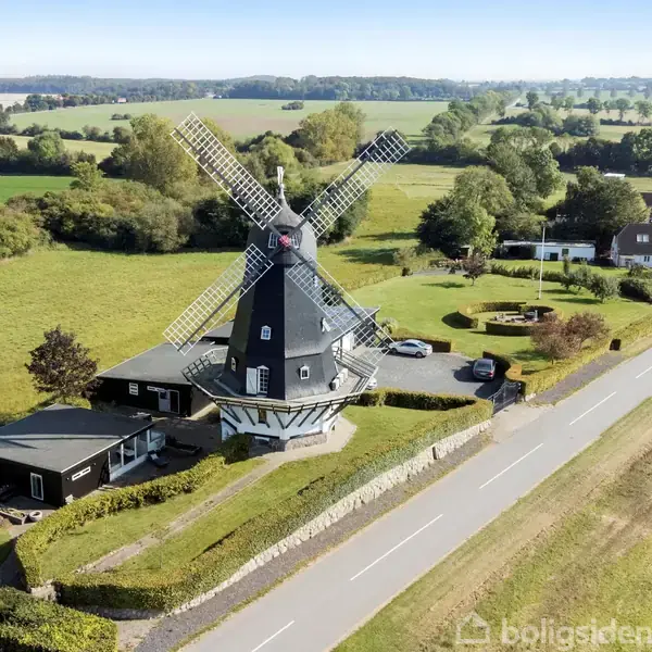 Møllen - et spændende og helt fantastisk hjem. I 1960 blev den gamle mølle i Vollerslev mellem Ringsted og Køge handlet som feriebolig, køberen brugte de næste år til at istandsætte, og gøre møllen til en helårsbolig. Møllens meget spændende indretning består af en entré med klinkegulv i sildebensparket med gulvvarme, walk-in-closet og lækkert badeværelse med blandt andet dampbad. På første sal er indrettet en ottekantet stue med lyse vægge og lyse gulve. Oprindeligt var det her, hvor mel og avnerne blev skilt fra hinanden. På næste etage ligger det smukke og meget rummelige køkken, der har udgang til ”altan”, der går rundt om hele møllen, med en fabelagtig udsigt. Næste plan rummer soveværelset og toilet. Herover er der værelse og øverst oppe er der teknikken, som både kan dreje tårnet og vingerne. Møllen kan ses i funktion som dengang da der blev malet mel. Det har været et stort projekt at renovere den gamle mølle; alle de massive vægge er isoleret. Gulvene var hullede og slidte, men nu er der etableret bambusgulve. Men for at bevare charmen er det originale træværk stadig synligt, og vinduerne ligner dem fra gamle dage. Foruden selve møllen er der 3 øvrige bygninger: Den ene et fantastisk værksted/hobbyrum med plads til jeres køretøjer. Et kontorafsnit med god plads, personalekøkken, møderum mv. - perfekt til klinik, hjemmekontor eller lignende. Samt sidst en gæste/teenagerafdeling med eget bad/toilet samt 2 gode værelser. Indgangen foregår gennem de store smedejernslåger (der betjenes med fjernbetjening) og der er et fint ankomstområde med nem adgang til garagerne, dertil den store græsplæne omkranset af flotte bøgehække. Måske jeres kommende firmadomicil eller drømmen for familien, som ønsker en bolig ingen andre har.