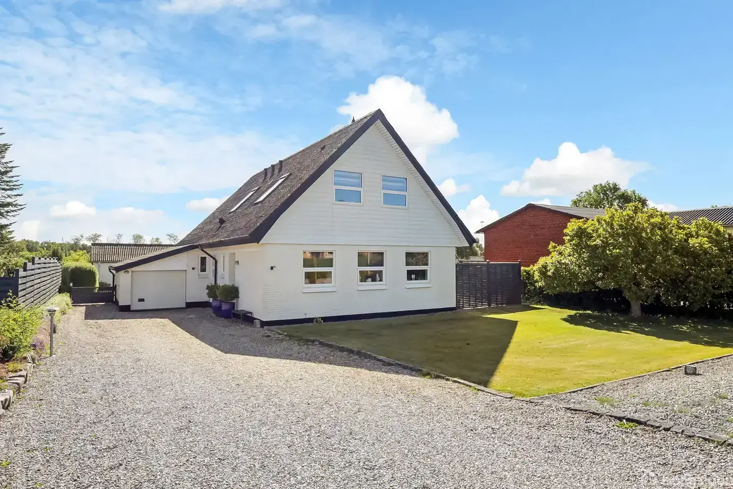 Centralt for alle dagligdagens fornødenheder, er denne skønne og indflytningsklare villa attraktivt beliggende, op til boldbaner og med få min gåafstand til skole, daginst., idrætshal og dagligvareindkøb etc. Her er en dejlig have med et regnvandsbed , dejligt værksted, to badeværelser og pt. 4. værelser, der nemt kunne blive 5, så der er plads til alle.Planløsningen fortæller om et stueplan på dejligt køkken / alrum / stue i et, med gulvvarme, udgang til solvendt terrasse og trappe til 1. sal.