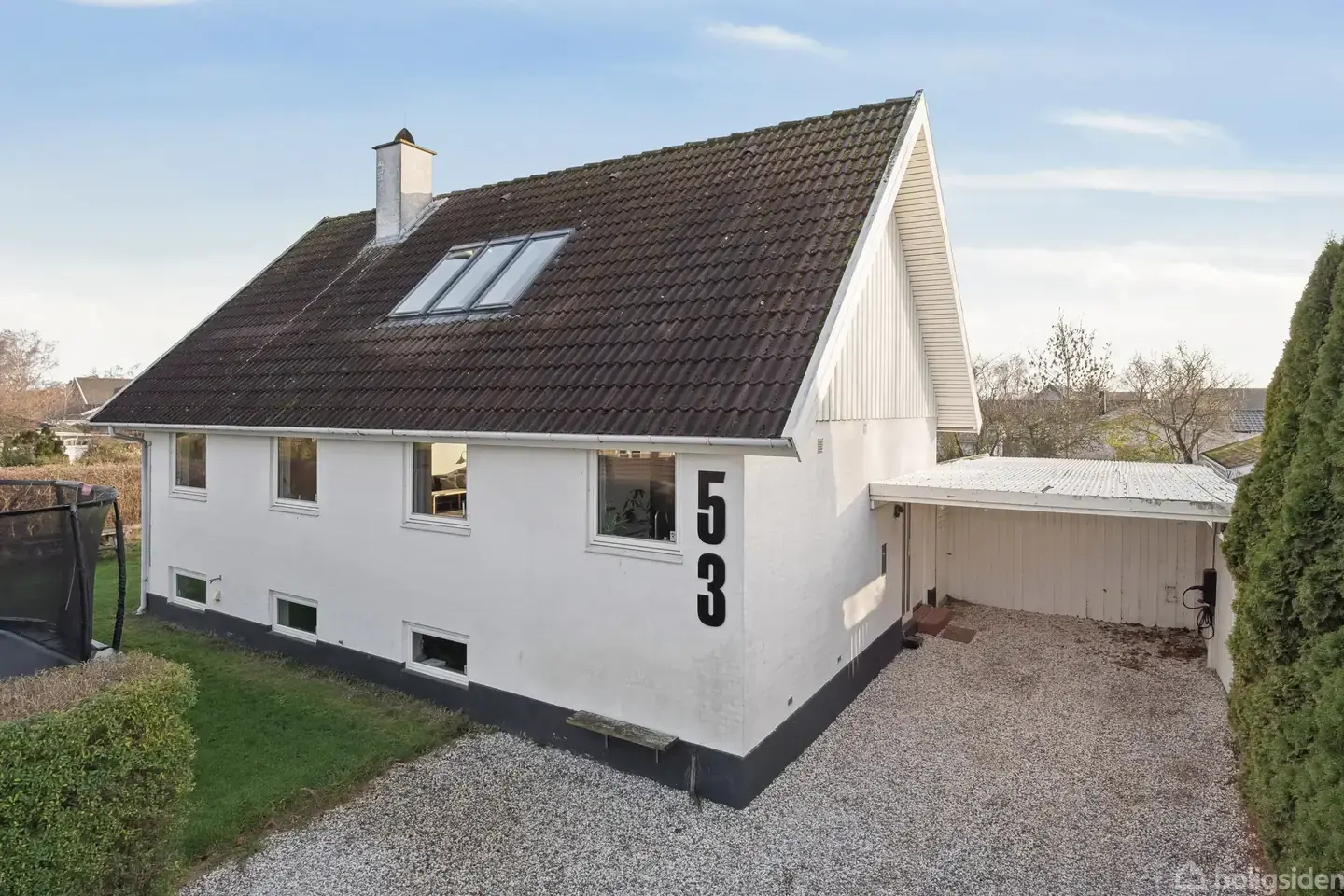 Tværvej 53 er et indbydende ½ 1-plans hus med kælder på i alt 192 etagemeter, beliggende i hjertet af idylliske Søvang. Et hjem, der forener rummelighed, funktionalitet og ro – med en planløsning, der er gennemtænkt fra kælder til kvist. Stueplanen er nyligt renoveret og fremstår lys og imødekommende med en naturlig sammenhæng mellem opholdsrum og udeliv. Den hyggelige stue fungerer som boligens samlingspunkt og har direkte udgang til en hævet terrasse, hvorfra der er et dejligt kig over haven