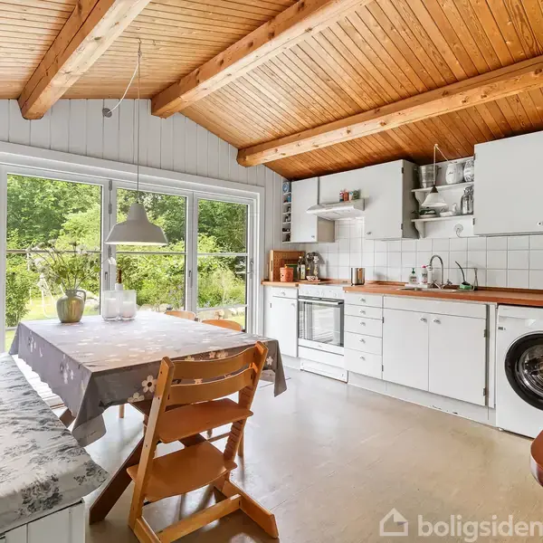Der findes sommerhuse, der bare er bygninger. Og så findes der sommerhuse som dette – steder, hvor man kan trække vejret dybt, sænke skuldrene og mærke, hvordan tiden føles anderledes. Når man drejer ind ad det lille hjulspor og møder huset, forstår man hurtigt, hvorfor det føles som et fristed. Her er plads – ikke bare i rum og kvadratmeter, men i stemning og nærvær. Lyset strømmer ind i køkkenalrummet og stuen, brændeovnen knitrer, og værelserne har præcis den plads, de skal have – til ro, s