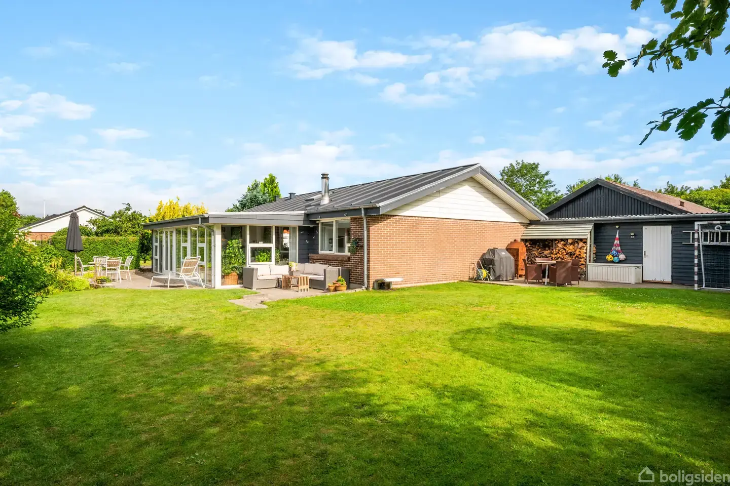 Indbydende villa på 115 m² og 31 m2 intrigeret udestue, 3 værelser, garage og dejlig ugeneret og solvent have – tæt på skole og grønne områder Velkommen til denne velholdte villa med 146 m² (inkl. udestue), som tilbyder en tryg og funktionel ramme for familielivet. Boligen ligger på en 795 m² stor grund med en skøn, ugeneret have, hvor der er plads til både leg, afslapning, hyggelige stunder og boldspil under åben himmel. Boligen er yderst velholdt med bl.a. tag, vinduer og genveks fra 2020.Inde