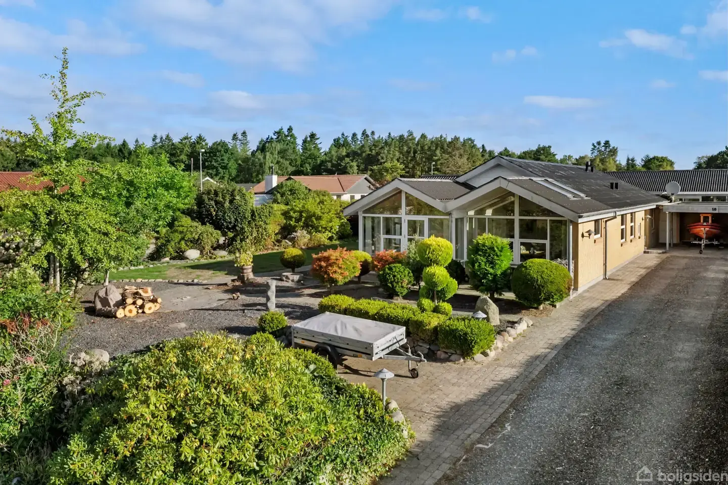 Åbent hus med tilmeldingskrav 16/2 - klik på billede - Denne skønne etplansvilla byder på masser af plads, en gennemtænkt planløsning og en dejlig have – perfekt til børnefamilien eller jer, der ønsker ro og rummelighed. Hjemmet har to indgange, hvor I enten kan træde ind via den lyse entré eller det funktionelle bryggers med god opbevaringsplads. Fra entréen er der adgang til et praktisk gæstetoilet. Boligens værelseafdeling rummer et stort soveværelse med skabe samt to gode værelser, der kan bruges som børneværelser, kontor eller hobbyrum. Badeværelset er lyst og rummeligt med både brus og badekar – perfekt til afslapning efter en lang dag. Derudover findes endnu et værelse, der kan tilpasses jeres behov. Det rummelige køkken har spiseplads og ligger i forlængelse af den store, lyse stue med loft til kip. De store vinduer og loftvinduer lader lyset strømme ind og skaber en skøn atmosfære. Her er der plads til både hverdag og fest – og selvfølgelig det store juletræ i december. Udestuen er en sand perle med utallige anvendelsesmuligheder – legeværelse, atelier, orangeri eller måske et ekstra soveværelse? Fra flere rum er der udgang til den overdækkede terrasse, hvor I kan nyde udelivet i private omgivelser. Haven er inspireret af japansk æstetik med smukke stenbede, blomster og træer, mens baghaven giver plads til leg, trampolin eller køkkenhave. Carporten med isoleret skur sørger for gode opbevaringsmuligheder til både bil og haveredskaber. Kort fortalt: En veldisponeret og indflytningsklar villa i et fredeligt område – perfekt til familien, der drømmer om plads, lys og nærvær. Fakta: Stor legeplads inden for 200 m Topisoleret med ventilationsanlæg og varmegenvinding Fibernet og hurtig internetforbindelse Godt ventileret indeklima Velkommen til jeres nye hjem!