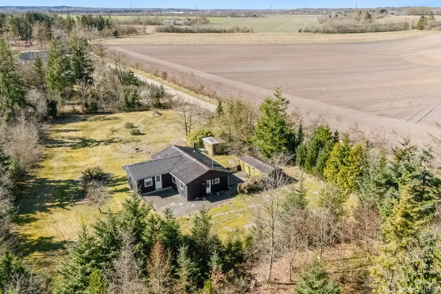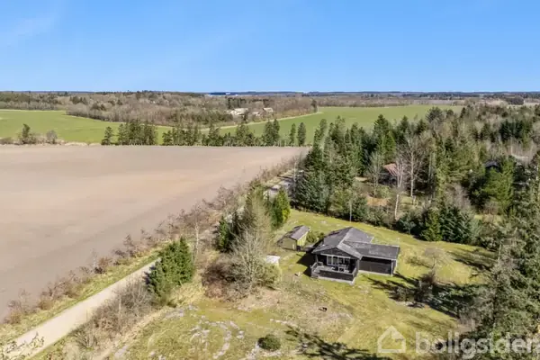 I midten af Jylland finder du dette fritidshus omgivet af skov og marker. Boligen fremstår velholdt og er løbende blevet opdateret. Bemærk især beklædningen fra 2008, pillebrændeovnen fra 2022 og varmepumpen fra slutningen af 00’erne. Vinduer og døre blev udskiftet i 2008, og kort tid efter, i 2010, fik boligen et yderligere løft i form af et nyt køkken. Dermed byder ejendommen på stilrene rammer og et behageligt opholdsmiljø både inde og ude. Udenfor venter en 3.298 m2 stor grund og tre terrass