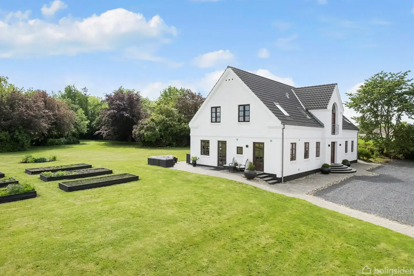 I den smukkeste natur har vi fornøjelsen at tilbyde denne nedlagte landbrugsejendom, hvor stuehuset er nyopført i 2004. En stilfuld og topmoderne bolig i en gennemført herskabelig stil til den kræsne og kvalitetsbevidste køber. Allerede når I kører ind ad den smukke allé og triller igennem indgangsporten til den store, velanlagte gårdsplads, fornemmer I, at der er tale om en helt særlig ejendom præget af smuk arkitektur, masser af detaljer og omkranset af en parklignende have og skøn natur. Den gode fornemmelse fortsætter til fulde, når I træder ind i husets store og herskabelige hall med en smuk trappe til førstesalen og adgang til den flotte spise- og opholdsstue. Stueetagen byder endvidere på et autentisk TVIS-landkøkken fra 2013 med masser af skabsplads, en smuk granitbordplade, rigtig god spiseplads og naturligvis alt i hårde hvidevarer. Desuden et stort, lækkert bryggers og hele to gæstetoiletter. Førstesalen indeholder hele fem skønne værelser, en stor repos, der kan benyttes til opholdsstue, og hvorfra der er udgang til en stor, sydvendt altan med en fantastisk udsigt. Ligeledes to superlækre badeværelser, hvoraf det ene er med spabad. Huset er på tre sider omgivet af en velanlagt, stor fliseterrasse, hvor synet til den store, parklignende have, naturen og de bølgende kornmarker kan nydes til fulde. Grunden er på næsten en hektar. Ejendommen er beliggende op ad Lille Vildmose, hvilket sikrer et rigt og mangfoldigt dyre- og fugleliv. Bilerne kan holde i den store, dobbelte garage, og så sikrer udbygningerne på 430 kvadratmeter god plads til den pladskrævende hobby. Huset ligger i udkanten af Lille Brøndum, der er en lille, hyggelig landsby med et stærkt sammenhold, hvor byens forsamlingshus er et af omdrejningspunkterne. Fra huset er der få kilometer til Bælum, der blandt andet har en stor, flot dagligvareforretning, et rigt foreningsliv, Østhimmerlands friskole, en velfungerende efterskole, SFO og børnehave. Desuden byder byen på en del kulturelle arrangementer i den charmerende Skovpavillon, der er beliggende i Sønderskoven, der også byder på sø og dejlig natur. Der er desuden 13 km til Øster Hurup med Danmarks mest børnevenlige badestrand, 16 km til Hadsund og 30 km til Aalborg. Det skulle glæde os meget at vise jer denne fantastiske ejendom – vi lover, at I ikke vil blive skuffet © EDC Carsten Bech