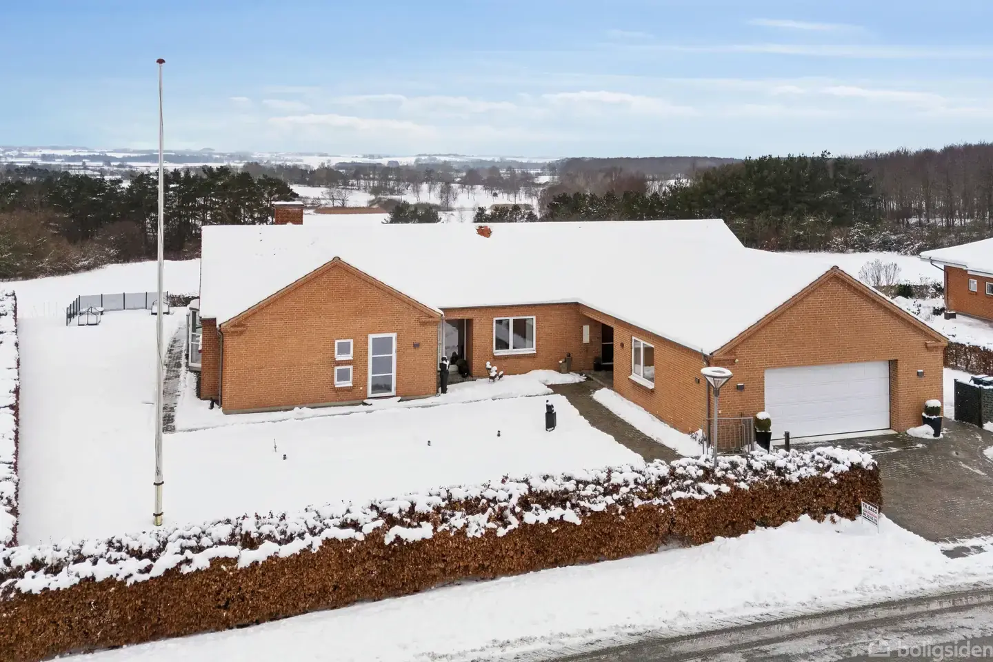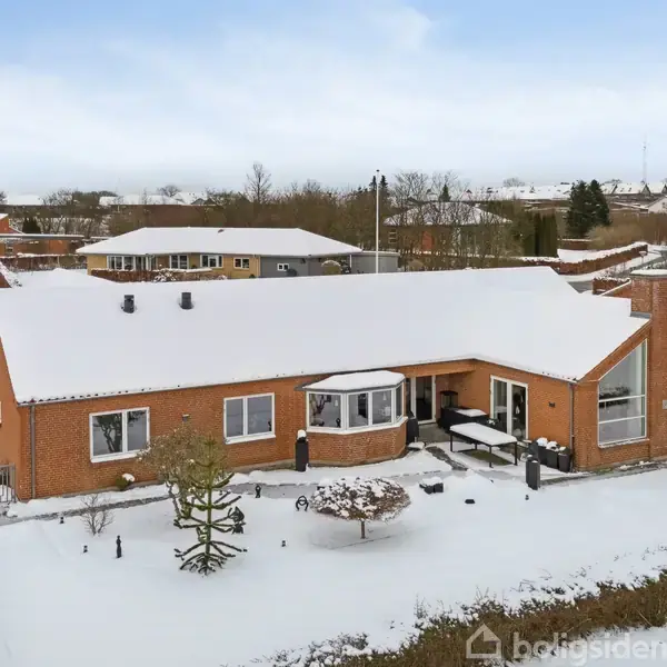 Stor og flot rødstensvilla med fantastisk udsigt – kvalitet, plads og komfort.Drømmer du om en rummelig og velbygget villa med masser af lys, udsigt og plads til hele familien? Så er denne imponerende rødstensvilla et oplagt valg. Et gedigent kvalitetsbyggeri!Villaen fremstår som en solid kvalitetsvilla opført i klassiske røde mursten og byder på hele 5 gode værelser, hvilket giver fleksible muligheder for både børneværelser, hjemmekontor og gæsteværelse. Hertil kommer 2 badeværelser, så hverdag