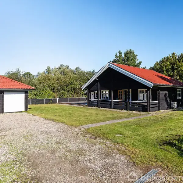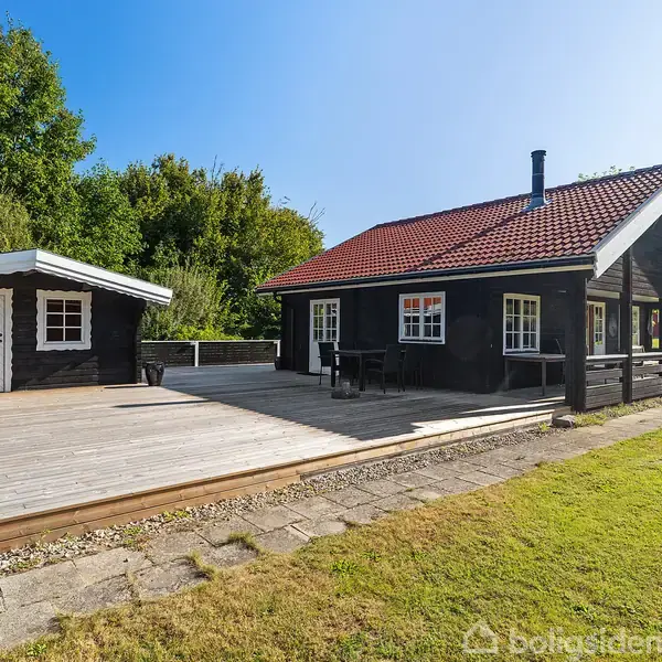 I fredelige omgivelser kan i nu udleve jeres drømme om et dejligt fritidshus nær vandet. Det perfekte valg for et par, familien som vil nyde stilheden eller alternativt til udlejning. Dette svenske bjælkehus med garage og gæsteannex ligger på en stor ugeneret naturgrund på 1201 m2, i hjørnet af udstykning, grænsende op til områdets grønne fællesarealer. Så søger man freden og det idylliske i sine ferier, er dette det ideelle hus. Bjælkehuset på 94 m2 er hyggeligt indrettet med tre værelser - to