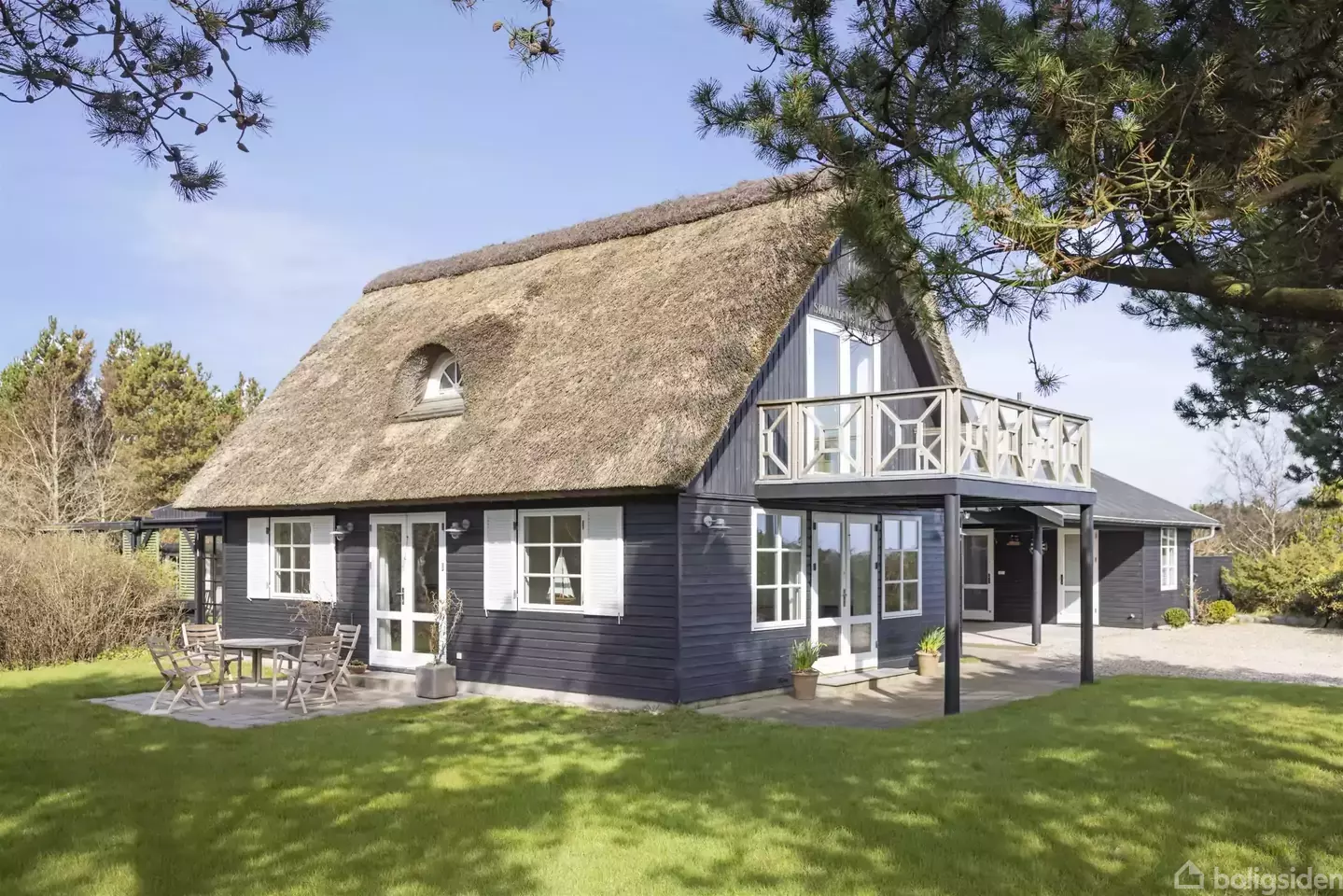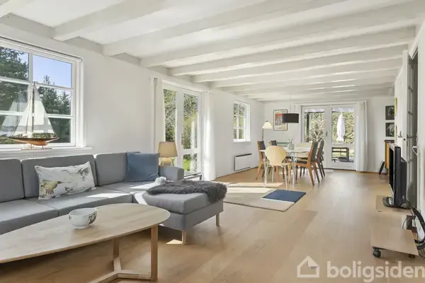 Velkommen til denne fantastiske sommeroase, hvor liebhaveri møder skønhed og komfort på en stor 3700 m2 grund. Dette sted præsenterer en uimodståelig bolig, hvor alt er udført i de bedste materialer og udsigten over det smukke klitlandskab og havet er utrolig. Indenfor byder boligen på entré med flot trappe til 1. sal og adgang til lækkert badeværelse med moderne hvide fliser og glasvæg til brus. En stor vinkelstue med smukt egetræsgulv og hele tre dobbelte glasdøre mod øst, syd og vest, sørger