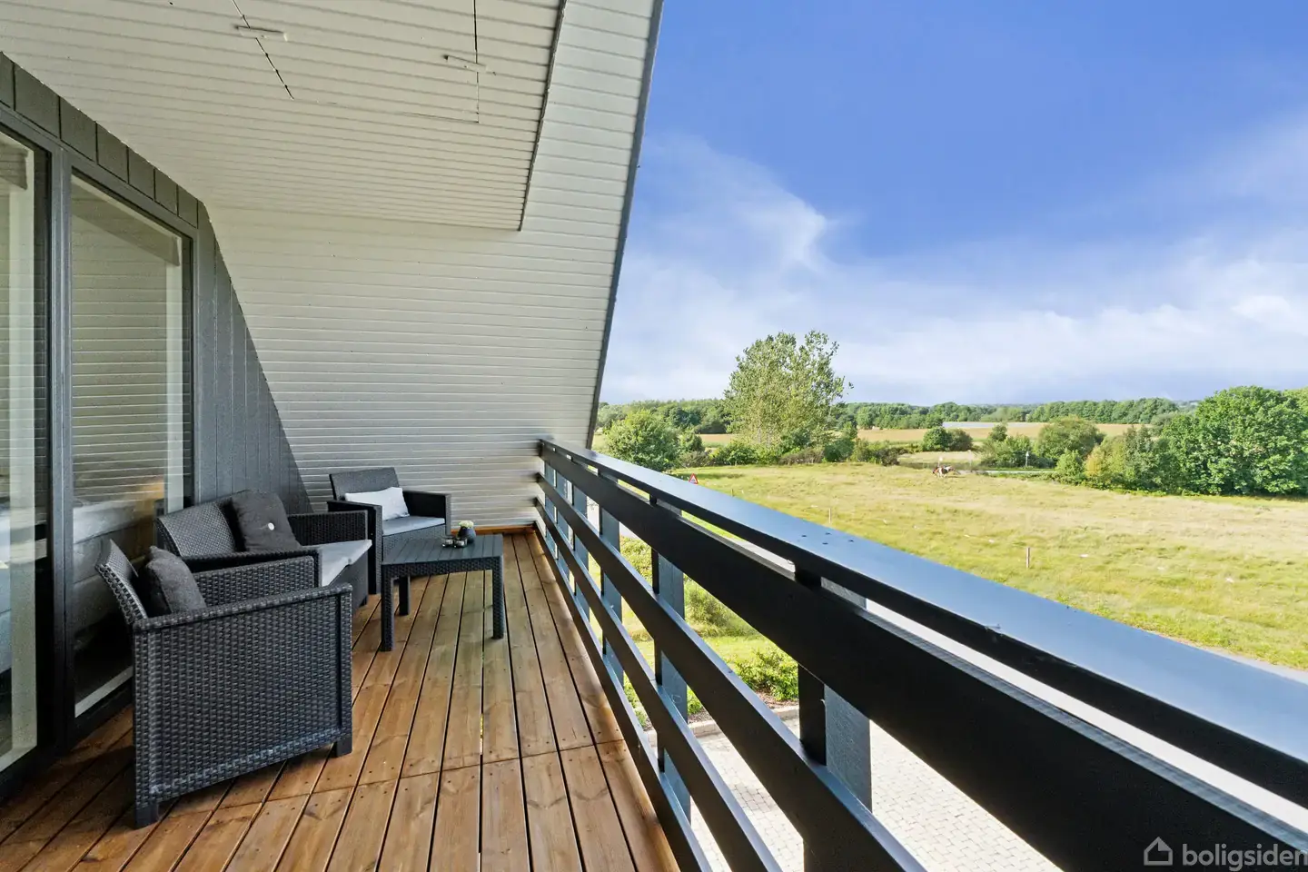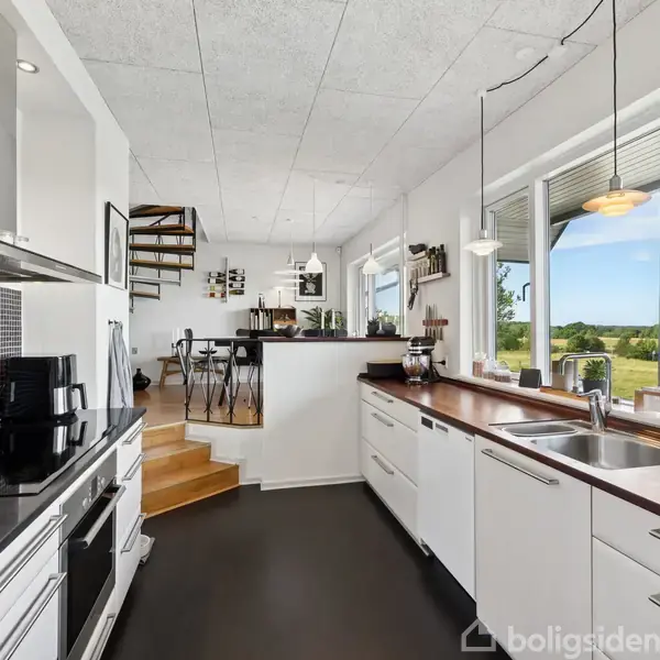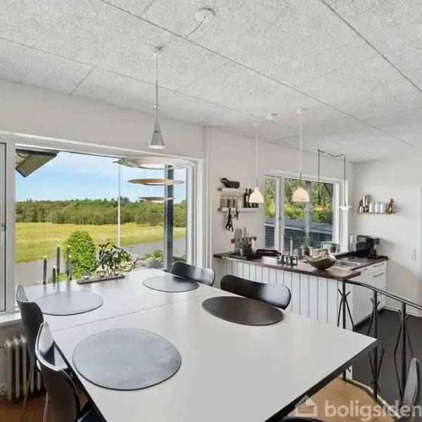 På en stor grund på 1.496 kvm finder du denne lyse og moderne villa med et boligareal på 168 kvm, fordelt på stueplan, 1. sal samt en anvendelig kælder. Ejendommen fremstår indbydende og velholdt med god plads til den store familie, der ønsker både rummelighed og funktionelle rammer. Allerede fra huset fornemmer man den virkelig gode udsigt, som kan nydes fra flere vinkler både inde og ude.Huset byder velkommen i en entré med adgang til et badeværelse og et af husets fem værelser, som med fordel