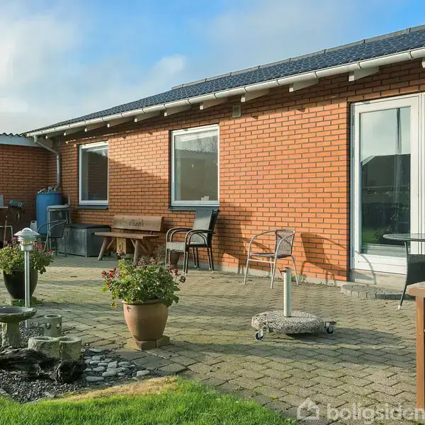 Åbent hus med tilmeldingskrav 3/2 - klik på billede - Centralt beliggende i Ulfborg finder I denne villa med en attraktiv beliggenhed tæt på skole, daginstitutioner, idrætshal, svømmehal, anlægget og byens forskellige indkøbsfaciliteter. Villaen rummer 151 m² og byder på hele 5 værelser samt 2 badeværelser. Fra carporten/indkørslen er der adgang til boligens bryggers, som fører videre ind til fordelingsgangen og husets første værelsesafdeling. Her ligger tre af boligens fem værelser, badeværelse samt entré. Fra gangen er der adgang til både køkkenet og stuen. I køkkenet er der spiseplads, og herfra er der desuden adgang ind til stuen og dennes spiseområde. Fra stuen fortsætter man til boligens anden værelsesafdeling, der rummer soveværelse, et ekstra værelse og endnu et badeværelse. Fra soveværelset er der udgang til udestuen, og både herfra og fra stuen er der adgang til en fin sydvendt terrasse. Haven ligger ugeneret med god plads, og ved garagen findes et tilhørende redskabsrum. Her får I en planløsning med flere indretningsmuligheder, og hvor alt i Ulfborg ligger inden for kort afstand.