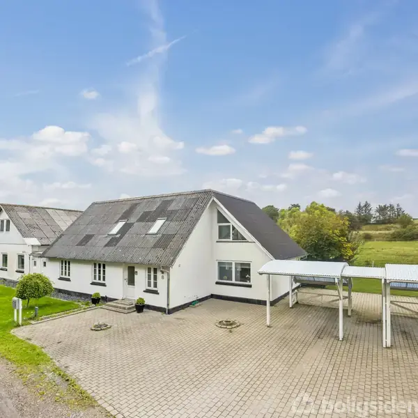 389m2 bolig i kanten af Brovst by - 2 HA stor grund Nu har I muligheden for at flytte på landet, men samtidig bo lige ved Brovst by.UdvendigtHer får I hele 389m2 bolig i 2 plan, som oprindeligt er opført i 1927 dog ombygget i 2001. Ejendommen fremstår med pudset facade, eternittag med pvc-vinduer samt trævinduer i tilbygningen. Dertil kommer en dobbelt carport med en fin flisebelagt indkørsel. Udhus på hhv. 96m2 og 64m2 som tidligere er blevet brugt som hestestald.Ejendommen er løbende vedligeho