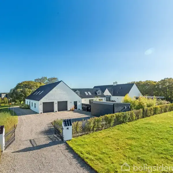 Denne villa er et sandt liebhaveri udover det sædvanlige. Her forenes kompromisløs kvalitet, gennemtænkte løsninger og lækre materialevalg i en bolig, der er fuldstændig indflytningsklar. Med hele 413 boligkvadratmeter, integreret garage og multirum på 169 kvadratmeter samt en 4.429 m² stor naturgrund med terrasser, overdækkede opholdsarealer, udespa, shelters og bålplads er rammerne sat for en boligoplevelse i særklasse. Dertil kommer unikke detaljer som Svane-elementer og et fjernbetjent vinkøleskab, der elegant kan hæves op fra gulvet i entréen. Boligen byder på en eksklusiv entré, der opleves som et glasparti med kig i flere retninger – et centralt bindeled mellem villaens afdelinger. Alrummet er husets centrale samlingspunkt. Her er loftet delvist ført til kip, hvilket understreger rummeligheden og de mange lysindfald fra de store vinduespartier. Alrummet har flere udgange til terrasser og have, så udelivet kan inddrages hele året. Køkkenet ligger i åben forbindelse med alrummet og fremstår med Svane-elementer, eksklusive materialer og masser af arbejdsplads. Fra køkkenet er der adgang til et værelse/kontor samt en trappe til 1. salen, hvor en repos åbner op til en hyggelig opholdsstue med ovenlysvinduer og et tilhørende værelse. Køkkenet giver desuden adgang til et meget rummeligt bryggers med god skabsplads, vaskefaciliteter og praktisk forbindelse direkte til garagen. Via en gang fra køkkenet er der adgang til et badeværelse og til det store multirum, som sælger i dag anvender som aktivitetsrum. Multirummet har både en dør og en stor port ind til garagen, hvilket giver fleksibilitet til pladskrævende hobbyer, fritidsaktiviteter eller noget helt tredje. Fra entréen leder en anden retning ind i villaens store opholdsstue med loft til kip, pejs og direkte udgang til terrasse og have. Stuen fungerer som et oplagt samlingssted for familie og gæster og binder samtidig forældreafdelingen og værelsesafdelingen sammen. Forældreafdelingen er indrettet som en privat suite med soveværelse, walk-in closet og et eksklusivt badeværelse med fritstående kar, dobbeltbruser og to håndvaske. Værelsesafdelingen rummer hele fire værelser, et multirum og et badeværelse – en oplagt afdeling til børn og/eller gæster. Udelivet er gennemtænkt som en naturlig forlængelse af boligen. De mange terrasser i både flise og træ skaber forskellige opholdsmiljøer omkring huset – fra solrige plateauer i forskudte niveauer til det gennemførte overdækkede terrasseområde. Den store naturgrund rummer samtidig et væld af muligheder for afslapning og oplevelser med hængekøjer, shelters, udespa, udebrus og bålplads, og her er et rigt dyreliv. Resultatet er et udeareal, der matcher boligens niveau og fuldender helheden mellem funktionalitet, kvalitet og livsstil.