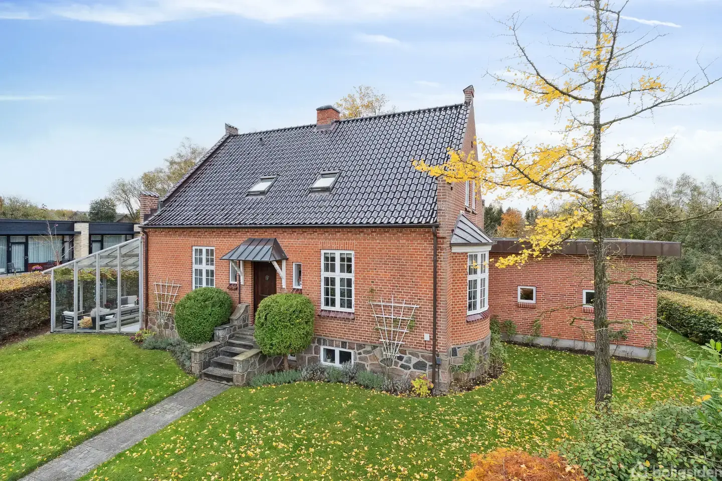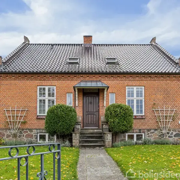 LIEBHAVEREJENDOM CENTRALT I HAMMEL MED 2.256 KVM. PARKLIGNENDE GRUND Allerede ved første skridt ind i den fine hall, skabes det helt rigtige førstehåndsindtryk af denne pragtfulde liebhaverejendom. Den indbydende rumfornemmelse, det gennemstrømmende lysindfald, den åbne forbindelse mellem stuerne og den fine detalje med nedsænket stue sætter stemningen – et hus, der emmer af både plads, prægtighed og hjemlighed. Fra hallen breder ejendommen sig videre med 332 m2 inklusiv flot kælder med stor