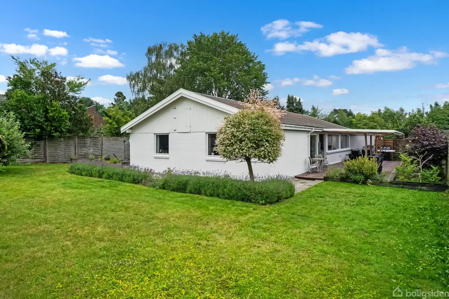 Velkommen til dette lækre og velholdte 1-plans hus, hvor både inde- og udelivet går op i en højere enhed. Huset er ideelt indrettet med hele fire gode soveværelser og to badeværelser, perfekt opdelt i børne- og forældreafdeling – en løsning, der skaber både privatliv og komfort i hverdagen.Boligens hjerte er det store, køkken-alrum, som ligger i åben forbindelse med en rummelig stue. Her er plads til både samvær, leg og afslapning – og med direkte udgang til en solrig, sydvendt terrasse, er det