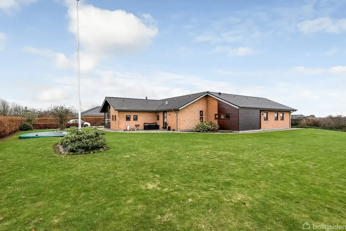 Velkommen på Vadgårdsvej 26 i Nørre Nebel. Her får du en af de bedst beliggende villaer i Nørre Nebel, direkte op til det flotte åbne land bag ved huset, men samtidig centralt i byen, med kort afstand til skole, vuggestue/børnehave og centrum af Nørre Nebel by, - og så oven i købet en helt igennem pragfuld ejendom. Ejendommen som er opført i 2001 og yderligere tilbygget senere, - så der nu er hele 228 m2 boligareal i ét plan med plads til både den store børnefamilie eller blot familien som ønske