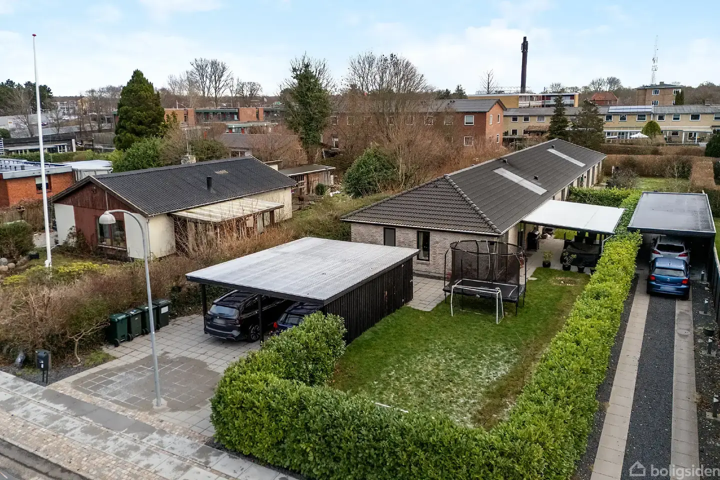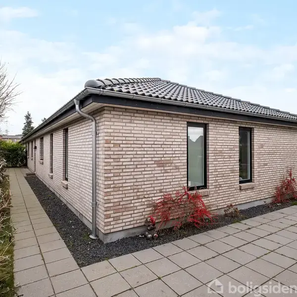 Nybygget og moderne halt dobbelthus fra 2019Yderst indbydende ejendom med lækre materialevalg.Her får du en fantastisk mulighed, hvis du leder efter et moderne og vedligeholdelsesfrit hjem med lavt varmeforbrug og minimal vedligeholdelse mange år frem. Ejendommen er bl.a. udstyret med solcelleanlæg, som bidrager til lave energiudgifter, og der er mulighed for opladning af elbil direkte ved ejendommen.Bosæt dig på en god central beliggenhed tæt på både indkøb, institutioner, skole og offentlig tr