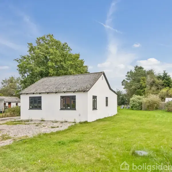 Lys, charmerende 1959-villa på stor 1.058 m2 grund med privatliv og ro Træd ind i en charmerende og indbydende villa fra 1959, hvor det førstehåndsindtryk er roligt og lyst. Her mødes I af et hjem med varme og plads til hverdagens små øjeblikke: morgenkaffen, leg på græsplænen og hyggelige aftener i stuen. Husets 64 m2 er udnyttet praktisk, og den store, 1.058 m2 grund giver både privatliv og frihed til udendørsliv. Planløsningen favner et åbent opholdsområde, hvor køkken og stue går i ét og da