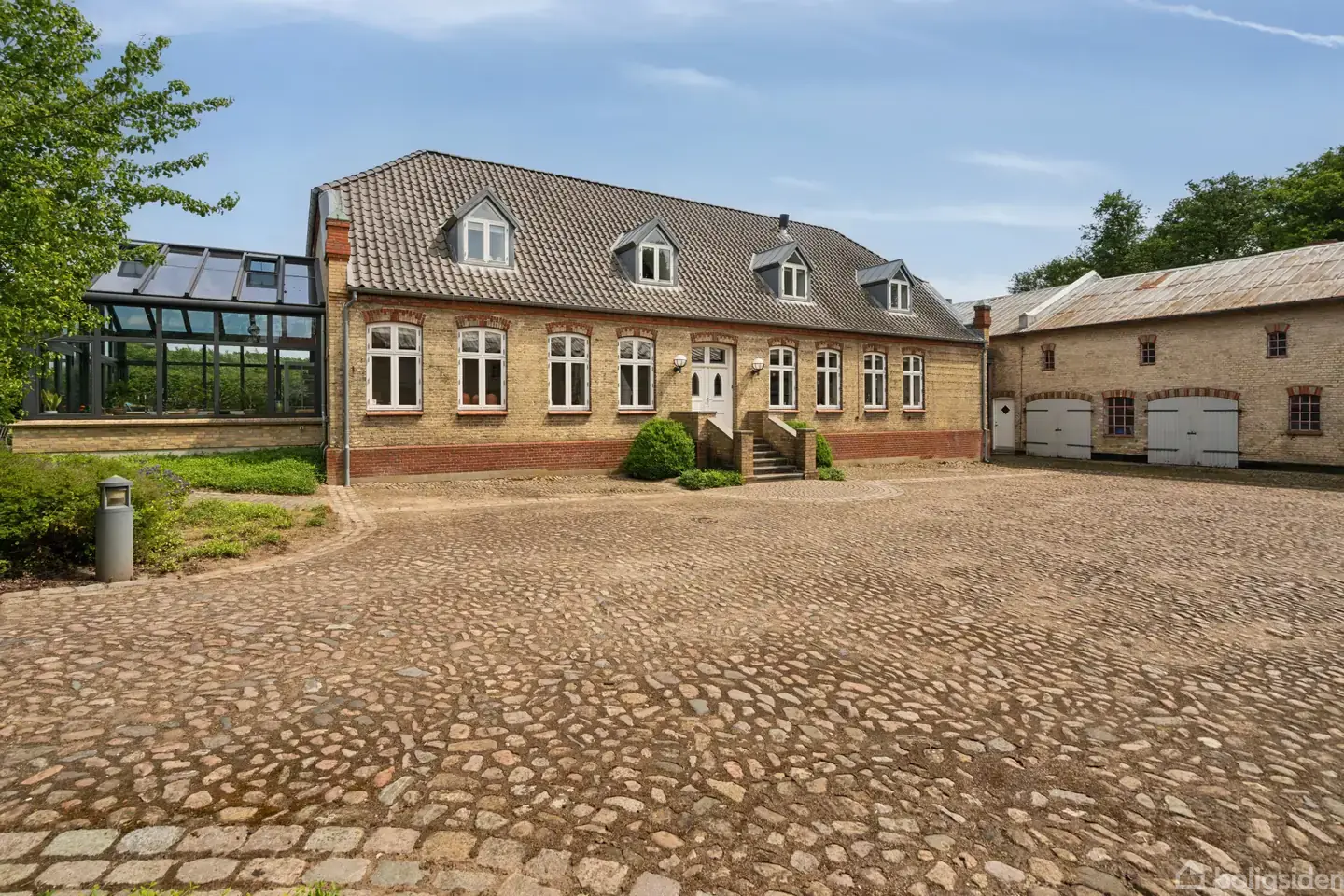 Midt mellem Nybøl Nor og landsbyen af samme navn ligger denne markante ejendom, hvor et stort, klassisk stuehus med et væld af lækre detaljer bliver ledsaget af et jordtilliggende på ikke mindre end 24 hektar. Masser af plads er således et gennemgående tema, og med pladsen følger også et hav af muligheder, eksempelvis for dyrehold eller alskens hobbyer, mens prikken over i’et bliver sat af den korte afstand til Sønderborg og hovedfærdselsårene i Sønderjylland. En behørig velkomst Ejendommen beg