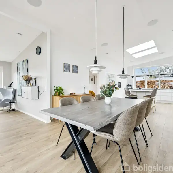 Velkommen til en indflytningsklar villa, hvor kvalitet, æstetik og funktionalitet går hånd i hånd. Denne moderne bolig fra 2019 er opført med fokus på holdbare materialer og gennemtænkte løsninger, som kan mærkes i hverdagen. Her får I 167 veldisponerede kvadratmeter på en 747 kvadratmeter stor grund i et roligt og børnevenligt kvarter. Store vinduespartier, højt til loftet og en harmonisk planløsning skaber en lys og indbydende atmosfære, mens de nøje udvalgte materialer sikrer et eksklusivt og