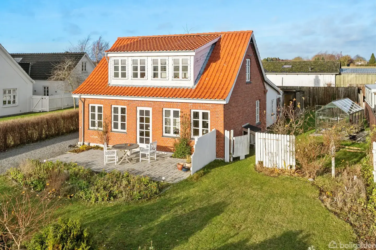 Charmerende gennemrenoveret villa i hyggelig udstykning tæt på Stege by. Huset er indrettet således: Entré med trappe til 1. salen. Stort lyst køkken alrum med nyere konveksbrændeovn, fine detaljer som åbninger i væg mellem stue og køkken, samt soveværelse og rummelig opholdsstue. Fra stuen er der udgang til den dejlige have og en af flere terrasser. Herfra har du dejlig vandudsigt. Endvidere mellemgang med adgang til soveværelse samt pænt badeværelse samt bagdør med udgang til overdækket gårdhave. 1. salen er med repos med lille håndvask. nyere gulvbelægning, stort soveværelse med nyere gulvbelægning og kæmpe kvist med flot udsigt over markerne samt Stege Nor. Der er desuden mindre gæsteværelse. Sælger har i nyere tid udskiftet oliefyret med varmepumpe, indsat ny brændeovn, og skiftet stort set alle ejendommens vinduer og døre. Til ejendommen hører garage og udhus samt mindre og hyggelig have, der er nem at holde og med udsigt til marker samt Stege Nor. Ejendommen fremtræder flot med røde sten, rødt tegltag og hvidmalede døre og vinduer. Ejendommen kan anvendes både som helårs/- og fritidshus. (Flexbolig). Nøgleord: Rolig beliggenhed - tæt på by og offentlig transport - god udsigt - fin byggestil