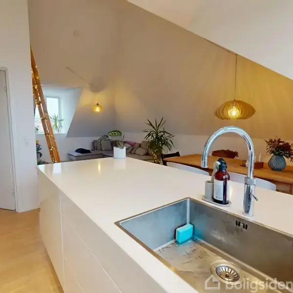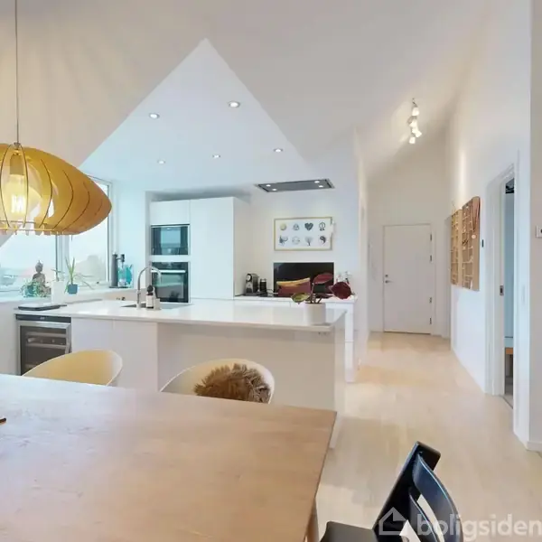 Lejligheden byder på et åbent og indbydende stueområde, hvor store vinduespartier sikrer et fantastisk lysindfald. De eksklusive materialevalg er gennemgående i hele boligen, og gulvvarmen i alle rum samt loft til kip skaber en følelse af hygge og rummelighed. Det store køkkenalrum er perfekt til både hverdag og fest, mens det moderne badeværelse og de to rummelige værelser tilbyder komfort og funktionalitet. En ekstra bonus er hemsen i stuen, der giver ekstra plads og fleksibilitet. Derudover medfølger et 20 m2 stort istandsat kælderværelse, som i dag anvendes som kontor og gæsteværelse, hvilket giver endnu flere muligheder for at tilpasse boligen til dine behov. Lejlighedens beboere har adgang til en stor fælles have, hvor man kan nyde de varme sommerdage. Der er også en tilhørende carport, hvilket gør parkering bekvemt og sikkert. Ejerforeningen, som består af tre lejligheder, er veldrevet med en sund økonomi, hvilket sikrer tryghed for fremtidige ejere. Beliggenheden er en af lejlighedens største fordele. Gammel Hasseris Skole ligger tæt på, hvilket gør det nemt for børnefamilier. Derudover er Børnehaven Thorsens Allé også inden for kort afstand, hvilket gør hverdagen lettere for småbørnsfamilier. Med en parkeringsplads lige udenfor er det nemt at komme til og fra lejligheden, og de mange faciliteter i nærområdet gør det til et attraktivt sted at bo. Denne lejlighed er perfekt for både par og familier, der ønsker at bo i et moderne hjem med en fantastisk beliggenhed i Aalborg, samt en rigtig fin udsigt ned til fjorden.