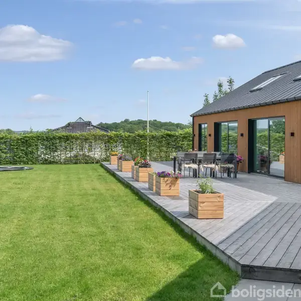 Velkommen til en nyopført, unik villa i naturskønne BrejningDrømmer du om at bo midt i naturen med skoven som nærmeste nabo? Denne eksklusive villa forener moderne arkitektur med funktionalitet og naturskønne omgivelser.Udefra imponerer villaen med sin elegante træfacade, sorte rammer omkring vinduerne og et sort tag, der tilsammen skaber et stilrent og minimalistisk udtryk. Det overdækkede indgangsparti byder velkommen til en lys og indbydende entré med loft til kip, der giver en fantastisk rum