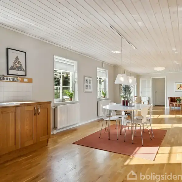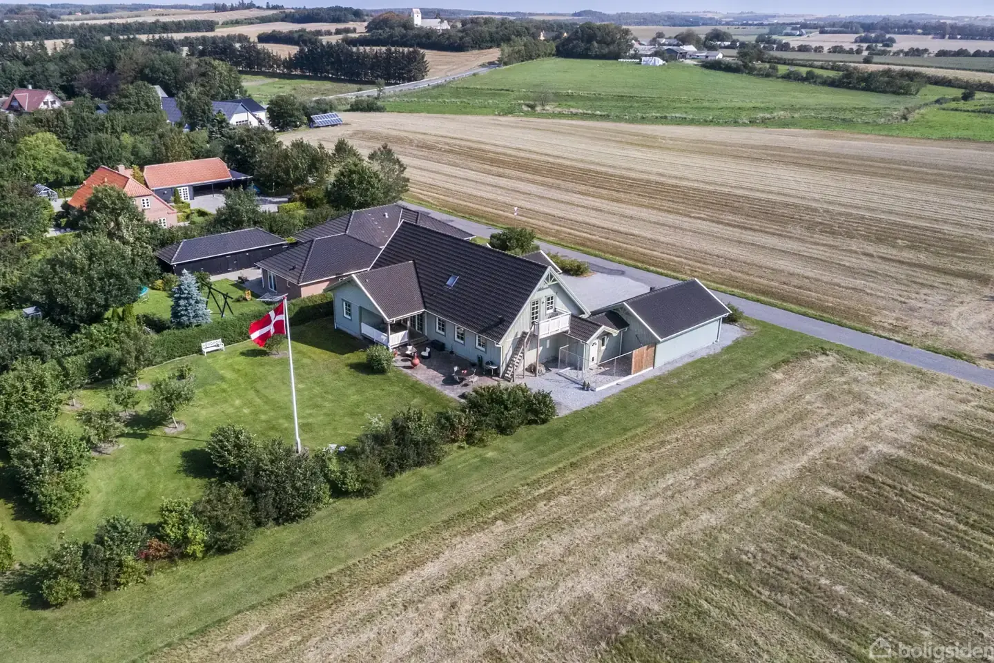 SÆRDELES FLOT OG CHARMERENDE SVENSK TRÆHUS OPFØRT I 2009 INGEN BOPLIGT - KAN ANVENDES BÅDE SOM HELÅRSBOLIG OG/ELLER FRITIDSBOLIGVangvejen 12 er beliggende i smuk natur på en 2.327 kvm. stor grund, omgivet af marker og med et godt naboskab, der omfatter flere småbørnsfamilier. Ejendommen er beliggende i Trekroner, hvor der er skole og meget aktivt landsbycenter. Her kan man gå i vuggestue, børnehave og skole til og med 6 klasse. Der kører (skole-)bus til Fjerritslev, som man kan stå på stort set
