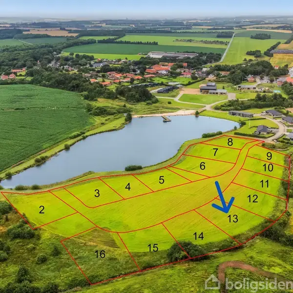 Nu udbydes 15 meget attraktive grunde til boligformål ved Vanting Sø i Ølstrup. Vanting Sø på ca. 2,5 HA er etableret i den vestlige del af Ølstrup som del af en større helhedsplan med attraktive byggegrunde, multihus, institutioner m.v. Der er således under 500 m til multihus, børneinstitutioner og skole og under 1 km til indkøb Denne sydvendte grund er beliggende direkte til Ølstrup Bæk med åben udsigt over markerne. Hele området byggemodnes og der anlægges veje med belægningssten og belysning. I henhold til lokalplanen er der en bebyggelsesprocent på 30, og der må bygges i max 2 etager, og højde max 8,5 m. Der er ikke byggepligt. De anførte tilslutningsafgifter fortalder til betaling pr. overtagelsesdagen.