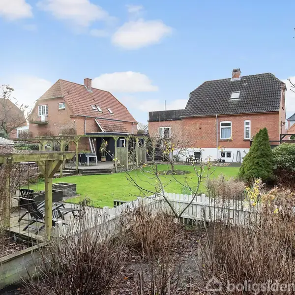 Åbent hus med tilmeldingskrav 7/2 - klik på billede - Spændende patriciavilla med unik have og udemiljø Vi tilbyder nu en af Skjerns fine villaer med central beliggenhed, hvor du også får det flotteste udemiljø i lukket og ugeneret baghave. Her venter muligheder og oplevelser for dig, der søger en bolig med sjæl. Indretning: Entré med original trappe til 1. sal. Adgang fra entréen til husets moderniserede badeværelse, hvor der er bruseniche og gulvvarme. To af stuerne er med det originale plankegulv og her er både rummeligt og rart at være. Yderligere en stue, hvor der er adgang til husets kælder samt udgang til skøn træterrasse og boligens flotte have. Centralt i huset er funktionelt køkken i åben forbindelse med den midterste stue. 1. salen har stort soveværelse med udgang til tagterrasse, værelse og badeværelse med badekar. Tør og anvendelig kælder med disponible rum, som bl.a. anvendes til kontor, bryggers, vaskerum og værelse. Gæstetoilet (VVS til bruser og gulvvarme er forberedt) samt egen indgang til kælderen. Udemiljøet er et kapitel for sig med skøn have, hvor solen kan nydes dagen lang. Området er veludnyttet og byder bl.a. på træterasse, drivhus, opvarmet mindre værksted, redskabsrum og flere funktionelle hyggekroge, hvor udelivet kan prioriteres. Tilmed skøn køkkenhave, frugtbuske og flotte høje træer, der omkranser grunden. Villaen byder på mange muligheder, og er løbende vedligeholdt med omfugning og udskiftede vinduer i en stor af huset. Book en fremvisning og oplev boligen med den centrale beliggenhed tæt på Fredsskoven, skole, indkøb og Skjerns Grønne Korridor.