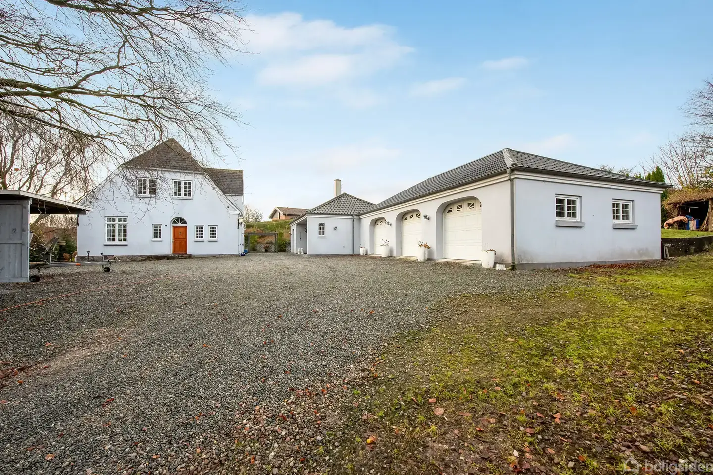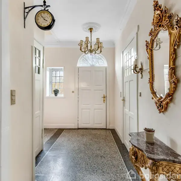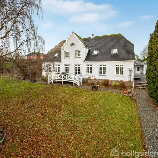 Allerede ved ankomsten fornemmer man den herskabelige stemning, som kendetegner denne rummelige villa. Den klassiske hovedbygning, den store forplads og de fine detaljer giver et indbydende udtryk, hvor hverdag og gæsteliv fungerer side om side. Her får I en bolig i god stand med plads til den store familie og en beliggenhed, hvor praktiske forhold og rolige omgivelser går hånd i hånd. Indenfor mødes I af en entré, der elegant samler stueplan og førstesal og skaber en naturlig fordeling. Herf