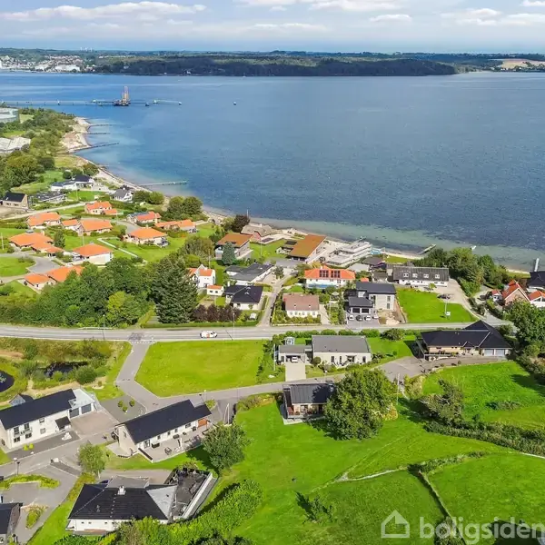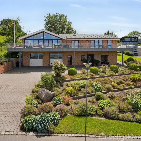 Lidt udenfor Aabenraa by, højt placeret i Hostrupskovs smukke landskab, ligger denne imponerende villa, hvor store vinduespartier i mahognitræ og den fortrinlige udsigt til Aabenraa Fjord sætter scenen. Herfra ser man over fjordens glitrende vand og helt frem til Løjt Land. Huset er opført i 2006 og siden opdateret ad flere omgange, så det i dag fremstår bedre end nogensinde. Den veldisponerede planløsning udspiller sig på tværs af to etager og udgør i alt 279 boligkvadratmeter samt en integrere