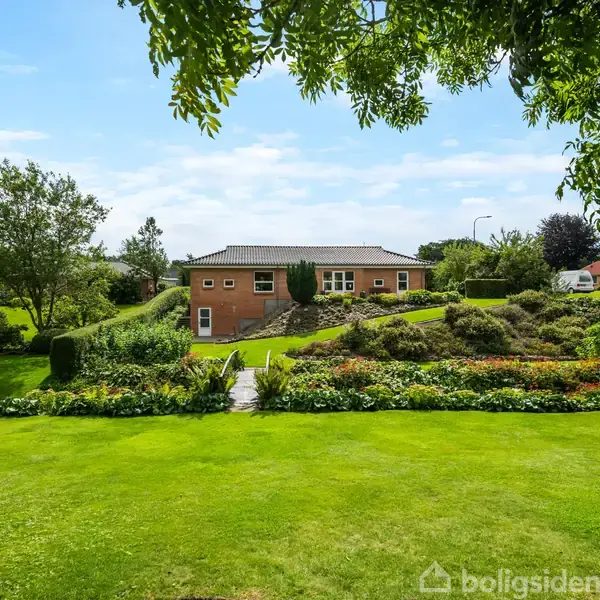 Denne villa på Ved Bækken 1 i Ejstrupholm er noget helt særligt, både inde og ude. Huset fra 2007 byder på 162 m² fordelt på tre værelser, heraf et forældresoveværelse med eget badeværelse, endnu et badeværelse, entré og et bryggers. Køkkenet ligger i naturlig forlængelse af den rummelige stue, hvor loft til kip og akustikvenlige materialer skaber et lyst, luftigt rum med plads til både børnesang, guitarspil og hyggelige middage. Fra stuen træder I direkte ud på terrassen, hvor sommerens måltide