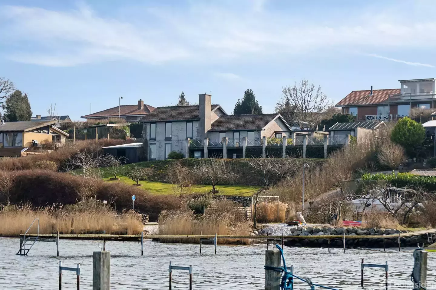Med adresse i første række til Skårup Sund er man sikret en betagende 180-graders udsigt over vandet med skov og åbne marker i horisonten. Den høje, tilbagetrukne placering på grunden sikrer både kystbeskyttelse og en fuldkommen ugeneret atmosfære, der tilfører noget helt særligt til tilværelsen. Et rigt fugleliv, varierende natur og aktivitet på sundet gør, at ingen dage er ens. Det er denne suveræne natur, der udmærker Thurø, som er kendt for sin ekstraordinært lange kystlinje og de dertilhørende strande. Landskabet udforskes nemt via stien, der ligger for enden af haven, hvor også en stor, privat parkeringsplads og en lille strand med bålplads venter. En af ejendommens store forcer er den imponerende terrasse, som troner højt over haven med et klart lysindfald. Her forenes ude- og inderum på fineste vis, da terrassen fungerer som en naturlig forlængelse af stuen og køkken-alrummet, der tilsammen udgør stueplanet. Og med både solopgange og solnedgange fra samme terrasse er dette et sted, hvor dagens smukkeste øjeblikke opleves – altid ugeneret, altid betagende. Bag den rustikke murstensfacade, som har en særpræget patina, gemmer der sig en arkitektonisk specialitet med et gennemført interiør på fire forskudte plan. Villaen er fuldstændig indflytningsklar med en god rumfordeling og velproportionerede værelser. Samtlige rum er nymalede, og Junckers massive bøgeparketgulve pryder hele huset, hvilket understreger hjemmets langtidsholdbare grundstruktur og tidløse design. Med hele 29 indbyggede højskabe, fordelt på fire værelser, walk-in-closet og kontor/multirum, er også praktikken på plads. Haven er en hyldest til bæredygtighed og æstetik. Der har været fokus på grøn omstilling i udformningen af haven, som har regnvandsopsamling og egen miljøstation til recirkulering af affald og kompostproduktion. Haven er desuden sirligt anlagt med cortenstålshøjbede i villaens frodige atriumgård på sydsiden samt små blomsterbede omkring frugttræerne og en lille sø i haven mod vandet. Med sin patinerede facade og moderne indretning vil denne villa både appellere til det unge par, der drømmer om en moderne nordisk udgave af en sydeuropæisk hacienda, og til den pladskrævende familie, som ønsker nærhed til en attraktiv folkeskole og områdets mange tilbud. I kan nemlig komme til Svendborgs aktive by- og kulturliv på hele fire måder: til fods eller på cykel ad stier langs øhavet, i bil over dæmningen eller med båd på sundet. Sidstnævnte skyldes, at Snævringens Både- og Saunalaug sikrer mulighed for egen bådplads få skridt fra hjemmet. Thurø Skole er desuden let tilgængelig via stisystemer, og både skolen og øens supermarked ligger inden for en radius af 500 meter.