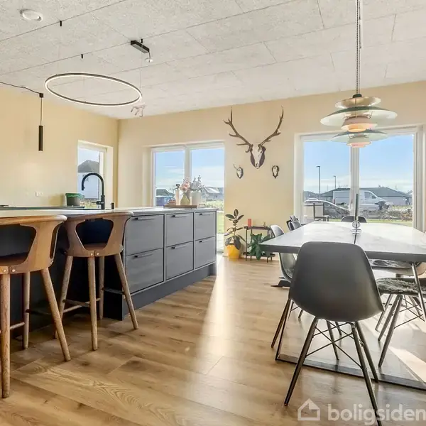Åbent hus med tilmeldingskrav 2/2 - klik på billede - På en rolig, lukket vej i det attraktive Vonsild finder du denne unikke, nybyggede funkisvilla, opført af en lokal murermester med fokus på kvalitet, detaljer og langtidsholdbarhed. Huset skiller sig ud med sit stilrene arkitektoniske udtryk, flade tag og eksklusive murværk, der i det rette lys fremstår med smukke blå- og lillatoner. Placeringen bagerst på grunden giver en stor, solrig have med plads til alt fra trampolin og fodboldmål til pool og leg. Hele huset er omgivet af 60x60 betonfliser, som skaber flere anvendelige terrasseområder, herunder en hyggelig overdækket terrasse med CEE-stik – perfekt til sommeraftener eller udendørs spa. Indenfor byder villaen på 5 værelser, fordelt på en voksenafdeling med stor skabsvæg og et luksuriøst badeværelse med lyserøde klinker og armaturer i børstet messing, samt en børneafdeling med eget badeværelse. Køkkenet fra Svane imponerer med farverige materialer, genbrugsløsninger, Quooker med kogende vand, iskoldt vand og danskvand, hyggelig alkove samt et skjult viktualierum. Garage med gulvvarme kan bruges til både opbevaring og som gildesal, og bag den er der ekstra plads til cykler og opbevaring. Huset er solidt fuldmuret, nemt at vedligeholde, har solcelleanlæg for lavere driftsomkostninger, og er placeret tæt på skole, indkøb, motorvej og bymidten – ideelt til familien, der ønsker både stil og funktionalitet i trygge omgivelser. Når du køber en bolig gennem EDC, har du mulighed for at få en gratis flytteforsikring. Ønsker du denne, skal du sende en mail med "Ja tak" til [email protected]
