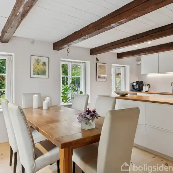 Her finder du en helt særlig villa, hvor historien møder nutiden i en harmonisk forening. Ejendommen, opført i 1875 og med et smukt stråtag, emmer af sjæl og fortællinger, samtidig med at den i dag fremstår med et moderne udtryk. Med sine 192 kvadratmeter bolig og en grund på 767 kvadratmeter ligger huset i første række til Hareskoven, hvor udsigten over skovens grønne kroner og tagrygge skaber en daglig poesi i horisonten.Indenfor mødes du af et hjem, som er gennemstrømmet af naturligt lys og h