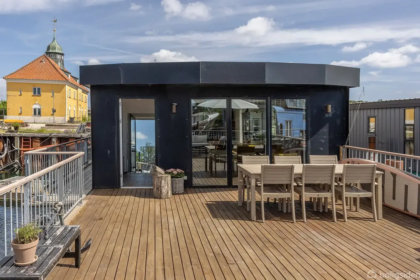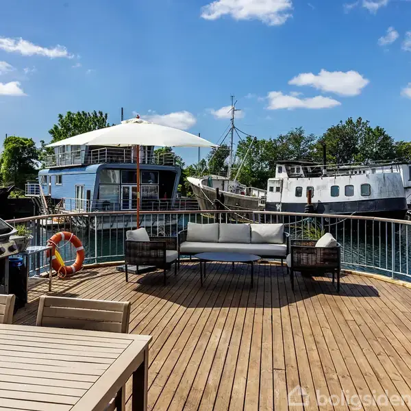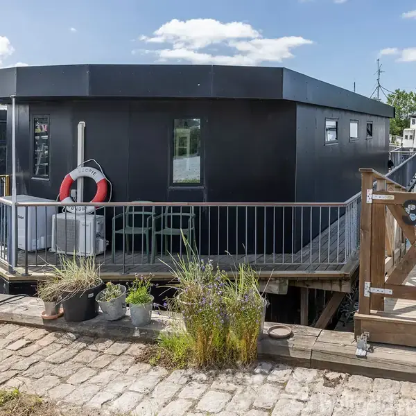 Husbåd med sjældent god lejekontrakt i Københavns Havn. Et skib som dette er som et hus på vandet. I sandhed vankant til salg – og i sandhed et magisk sted at bo. Midt i Københavns Havn – lige ved slusen hvor Nokken slutter i den sydlige del af Københavns Havn. Vi søger ofte til vandet i håb om at finde ro. Og udsyn. Og lys og luft. Det fås her i denne spektakulære bolig, der indfanger alle drømmene om at bo ved vandet. Stemningen er noget særligt her. Livet er noget særligt her. Og på en eller anden finurlig måde, så går det særlige hånd i hånd med det enkle og ligefremme. Det er noget at det, der gør dette sted så særligt. Husbåden er indrettet med en nænsomhed og en udpræget grad af kvalitetsbevidsthed. Her er der tænkt over enhver detalje og det er lykkedes at skabe en bolig og en aptering, der forstår værdien i hver enkel kvadratmeter. Indretning: Skibets indretning er i sin hovedstuktur inspireret af planløsning fra et mere traditionelt toplans hus. Her har man en overetage med entre til stort køkkenalrum og stue i ét, hvorfra der er udgang til stort terrasseområde. I underetagen findes fire store værelser, badeværelse og teknik/depotrum. Sådan, som en omvendt indrettet klassisk villa nok ville tage form. Sådan er tingene her på mange måder omvendt af det traditionelle. Når man lægger til kaj her, så er man en del af Husbådekolonien, som er et husbådsfællesskab. Dem er der mange af, men særligt for denne husbåd er, at man har en helt usædvanlig attraktiv lejekontrakt, som følge af de aftaler der er indgået med By&Havn. Som ejer er man sikret en kajplads i Husbådskolonien med en løbende 20-årig lejeaftale. Området om Slusen har de sidste mange år været en del af Københavns Sydhavns store udvikling, og er i dag et kreativt område i København med smuk natur omkring havnen mod Amager Fælled. Det er et område med gode indkøbsmuligheder, caféer og kort afstand til metro. Herudover er der også den lokale Café Slusen, hvor man i sommerhalvåret kan drikke naturvin og spise sardiner på dåse, og mæske sig i italiensk is og kaffe. Dette er et helt unikt hjem eller fristed, hvor det enkle liv hyldes.