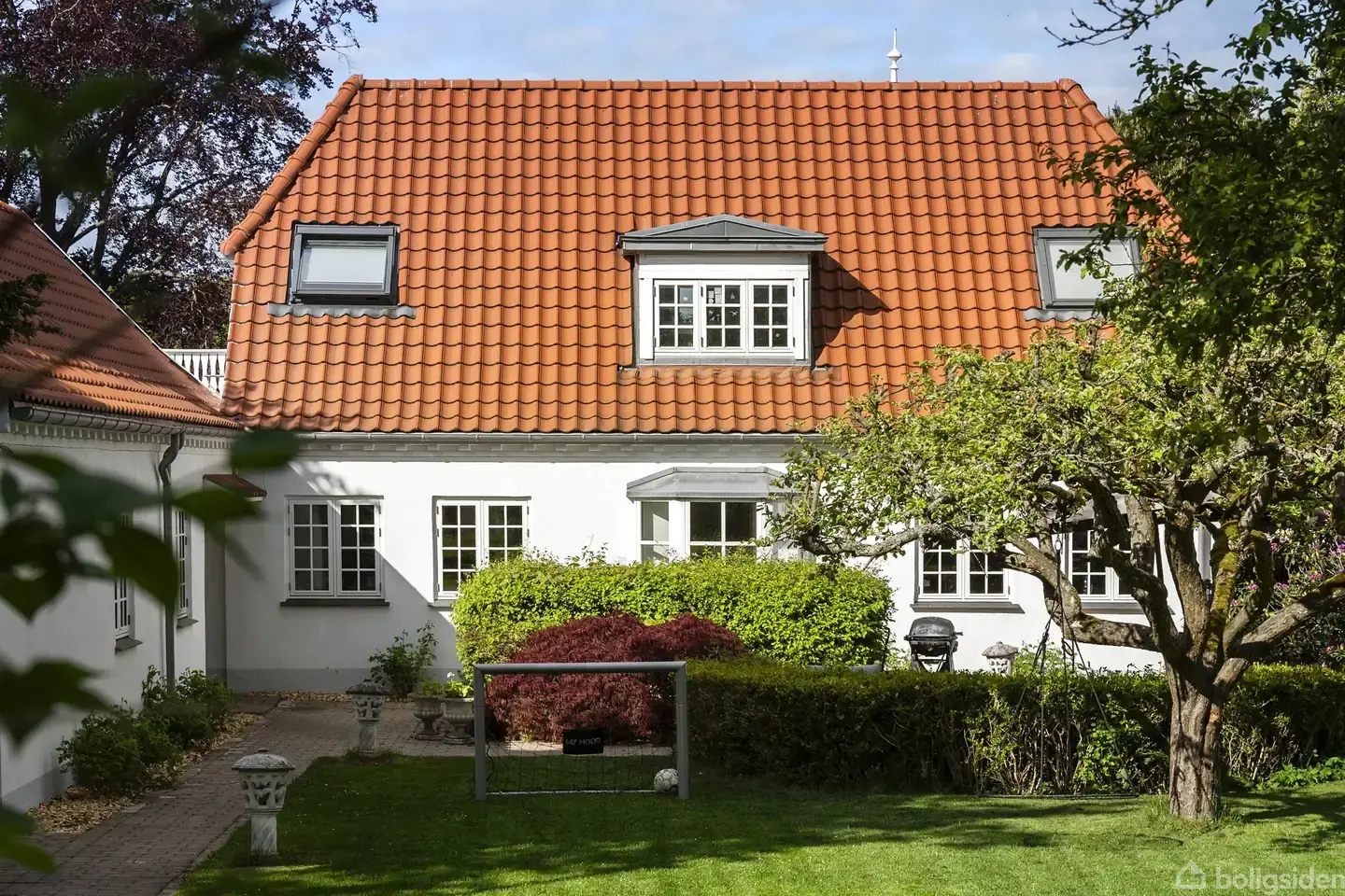 Charmerende palævilla nær Øresund og Vedbæk by Charmerende palævilla nær Øresund og Vedbæk by På en af landets mest mondæne adresser, lige ved Øresund og tæt på Vedbæk by ligger denne charmerende palævilla på skøn opvokset parklignende have, som er totalt afskærmet mod strandvejen med mur, beplantning og dobbelt garage. Stueplan Præsentabel entré. Stor opholdsstue med skønt lysindfald, brændeovn, solrig møblerbar karnap og svungen trappe til 1. sal. Via dobbelte fløjdøre er der adgang til det