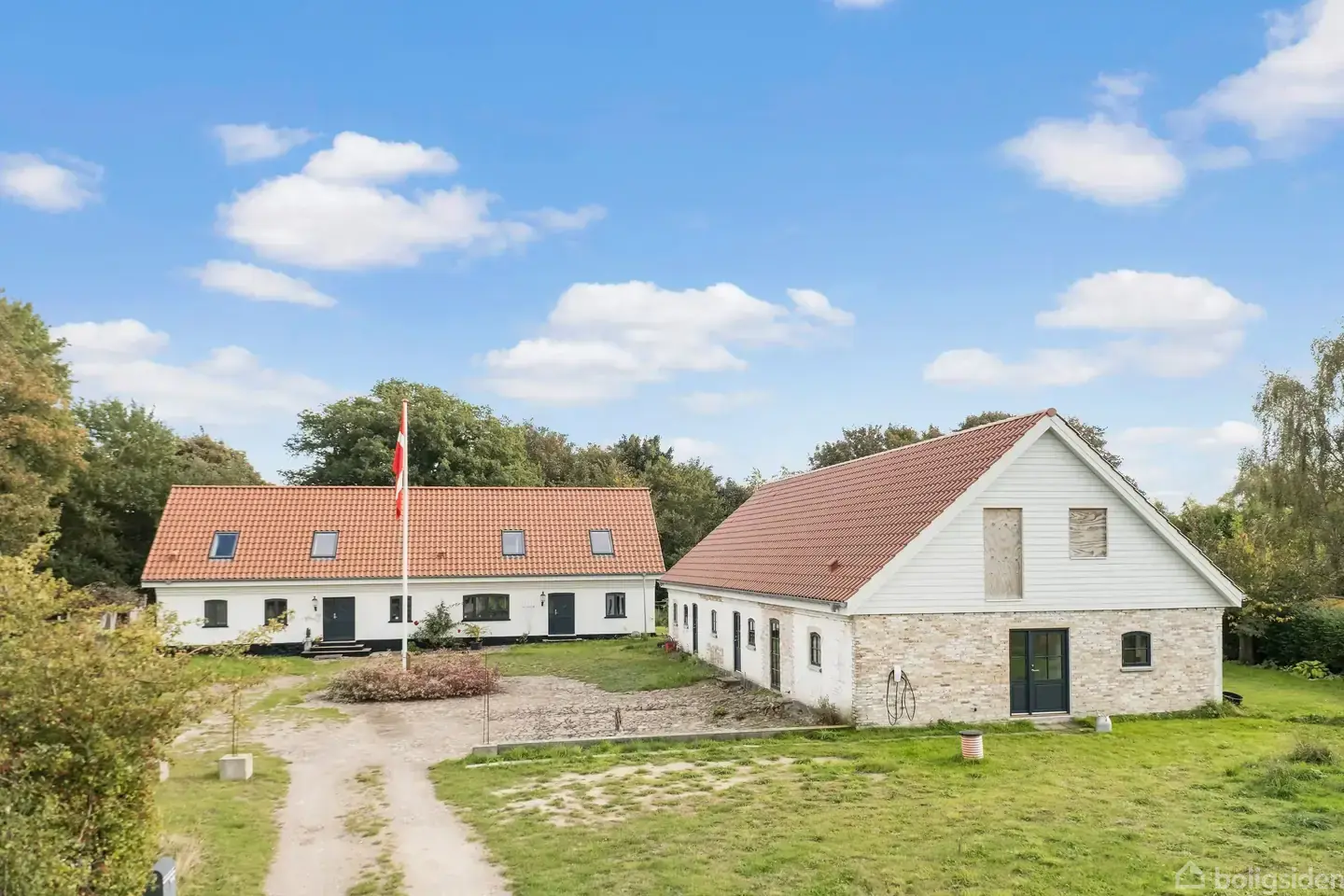 To boliger – ét fællesskab midt i Veddinge Bakker ... I Odsherred mødes himmel, hav og bakker på en måde, man sjældent glemmer. Lyset over Sejerø Bugt, de bakkede landskaber og stilheden, der føles som en dyb vejrtrækning. Her, på kanten af Veddinge Bakker, ligger gården på Veddingevej 27 – en ejendom med historie, karakter og en ro, man mærker med det samme. Gården har ligget her i mere end 125 år, men står i dag som to moderne helårsboliger – ideel til jer, der drømmer om et bofællesskab, generationsbolig eller mulighed for udlejning, hvor der er plads til både fællesskab og fordybelse. Hovedhuset på 268 m2 og længen på 180 m2 er nænsomt renoveret med smukke materialer, nyt tegltag og gulvvarme i begge bygninger. I stuehuset skaber 1. salen med loft til kip og store vinduer et smukt lys og udsyn over bakkerne. Længen rummer en lejlighed på ca. 100 m2, mens de øvrige rum står klar til det, man selv ønsker at give liv – hvad enten det er flere værelser, et værksted, et atelier eller noget helt tredje. Grunden er på små halvanden hektar – et stykke kuperet natur med plads til at leve, dyrke og drømme. Her er fred, udsigt og naturens egne rytmer som bagtæppe. Dyrene færdes frit, og man mærker tydeligt, at dette er landzone i ordets bedste betydning: frihed, himmel og tid. Stranden ligger få minutter herfra, et lille stykke kyst som kun de lokale kender. Der er kort til Fårevejle og Asnæs med butikker, skole og institutioner, og kun lidt under en time til København. Så tæt på byen og alligevel en verden for sig. Veddingevej 27 er for jer, der søger et liv med plads til både fællesskab og ro. Et sted, hvor man kan høre stilheden, se årstiderne skifte og finde hjem.