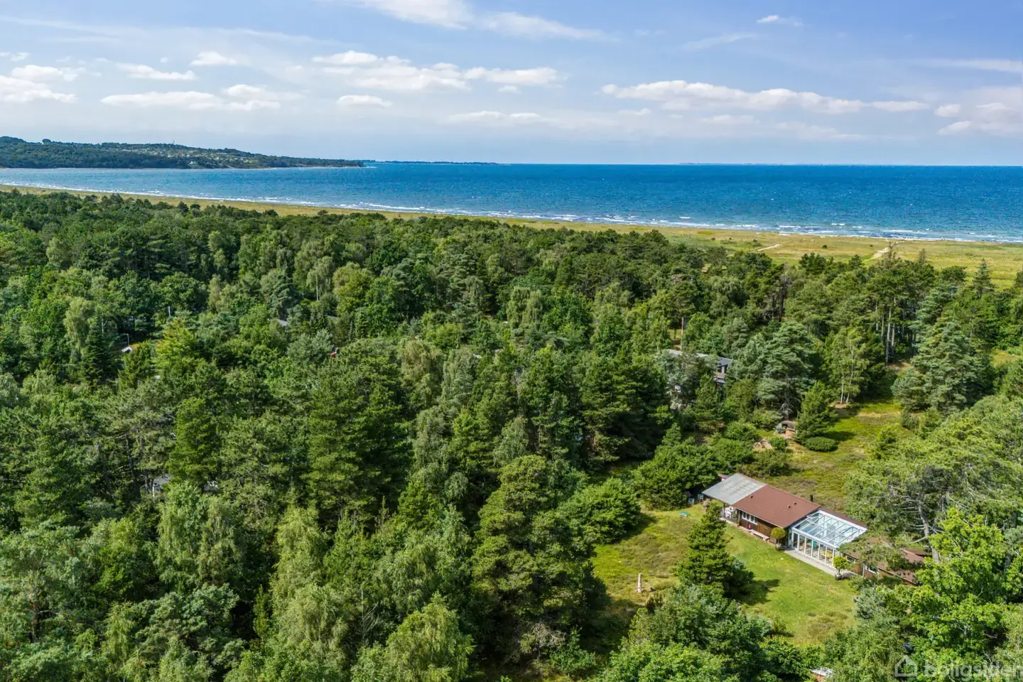 Der findes ejendomme, der ikke blot skal ses – men mærkes. Denne skønne fritidsbolig er én af dem. Her venter et liv i tæt samspil med naturen, hvor stilheden er nærværende, og udsigten over lyng og skov skaber en helt særlig ro. Ejendommen ligger helt privat på en næsten 8.000 m² stor naturgrund-kuperet med lyng, nåletræer og levende hegn. Her færdes rådyr, fasaner og harer frit, og bugten anes i horisonten gennem trækronernes silhuet. Huset er opført i 1985 og er arkitekttegnet med tydelig i