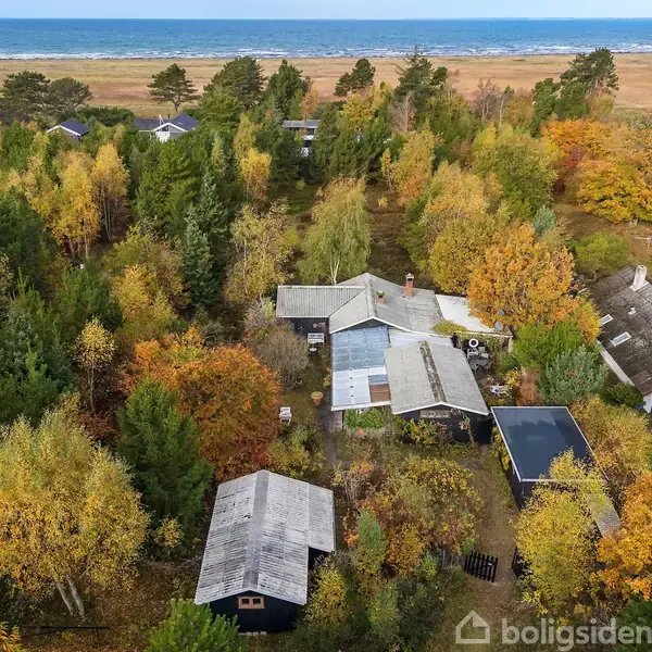 Naturparadis i Vig Lyng - kun 500 meter fra stranden Et sjældent privat fristed tæt på vandet – sådan opleves sommerhuset på Vej 14 46 i Vig Lyng. Huset ligger midt på en 3.080 m² stor naturgrund, hvor lyng, birk og fyrretræer skaber fornemmelsen af at have sin egen lille bid af skovlandskab, kun 500 meter fra den brede sandstrand. Sommerhuset rummer 125 m² bolig med en varm, personlig stemning. Indenfor mødes man af lyse træpaneler, parketgulve og store vinduespartier, der trækker naturen helt ind i stuen. Den store opholdsstue samler familien med brændeovnen som naturligt samlingspunkt, og der er god plads til både spisebord, sofaområde og læsekroge. Langs den ene væg står en hel biblioteksvæg – perfekt til lange ferier med ro og fordybelse. Indretningen er klassisk og charmerende, med et diskret strejf af retro og masser af sjæl. Køkkenet ligger praktisk i forbindelse mellem de 2 stuer, så hverdagen fungerer glidende, også når huset er fyldt af gæster. Der er to toiletter – et badeværelse og et ekstra gæstetoilet – hvilket gør huset særligt velegnet til både børnefamilier og flere generationer. Soveafdelingen byder på flere gode værelser med skabe og fint lysindfald, så der er reelle sovepladser frem for kompromiser. Som supplement til hovedhuset er der et hyggeligt anneks med ekstra sovepladser. Her får gæster – eller de større børn – deres egen lille “base” med træbeklædte vægge og den samme varme sommerhusstemning som i hovedhuset. Overgangen mellem inde og ude er et af husets store kvaliteter. Langs sydsiden ligger en stor overdækket terrasse, hvor man har solen stort set hele dagen og kan forlænge sæsonen langt ind i forår og efterår. Her er plads til langbord, fletmøbler og udeliv i al slags vejr. På nordsiden finder du en mere åben terrasse, der fungerer som et køligt tilflugtssted på de varmeste sommerdage. Den lukkede have omkring terrasserne skaber en intim gårdhavestemning, mens resten af naturgrunden får lov at være mere vild og uformel. Varmen klares både praktisk og økonomisk fornuftigt med varmepumpe radiatorer og brændeovn, så huset er behageligt at opholde sig i, også uden for højsæsonen. Området omkring Vig Lyng er kendt for sin kombination af skov og strand. Fra huset er der kort cykeltur til både Jyderup Skov og Ellinge Skov, hvor stierne inviterer til gåture, løb og mountainbike. Lokale aktiviteter og tilbud ligger i nærområdet, så der er altid noget at tage sig til – hvad enten dagene skal gå med badeture, naturoplevelser eller små udflugter. Alt i alt et sommerhus med usædvanligt meget atmosfære, masser af plads til familie og venner, og en grund der føles som sin egen lille naturpark – få minutter fra havet.
