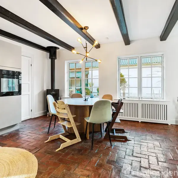Dette er den slags hjem, der bare føles helt rigtigt ved første øjekast. Her er charmerende sprossevinduer, synlige bjælker og flere rummelige leverum fordelt på to plan, så der er plads til både familieliv og fordybelse. Her er der kræset for detaljerne, både inde og ude. I får bl.a. et stilfuldt køkken, charmerende trægulve og ude venter jer en overdådig terrasse. Hvad mere kan man ønske sig?I stueplanen åbner hjemmet sig med fire store stuer, hvor sprossevinduer og franske døre skaber en char
