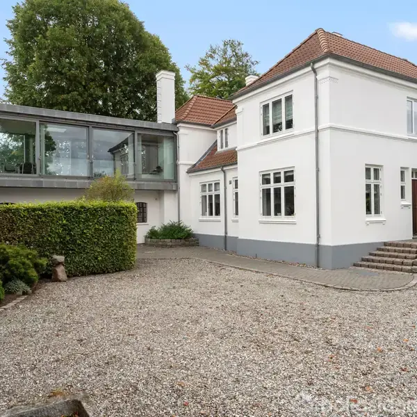 Åbent hus med tilmeldingskrav 19/2 - klik på billede - Velkommen til Kirkebjerg, en enestående liebhaverejendom beliggende i det naturskønne Klakring ved Juelsminde. Denne historiske ejendom, der kan dateres tilbage til 1912, emmer af sjæl og charme. Ejendommens historie rækker tilbage til dens oprindelse som både landbrug og skole. I starten af 1900-tallet fungerede gården som skole, og det var her, blandt andre datter af mølleren i Klejs, tog præliminæreksamen. Gården blev opdateret til moderne standarder gennem en omfattende renovering i 2004, og med sine rummelige bygninger, smukke omgivelser og unikke faciliteter er Kirkebjerg det perfekte sted for dig, der drømmer om en bolig med plads til både livsstil og store drømme. Hovedhuset på hele 303 kvm har gennemgået en nænsom renovering, hvor man har bibeholdt de originale detaljer såsom den smukke gamle trappe, indbyggede bogreoler og ejendommens elegante facadeudsmykning. De lyse og rummelige stuer skaber en indbydende atmosfære, mens moderne opdateringer sikrer en komfortabel hverdag. Overalt i huset forenes historisk elegance med eksklusive materialevalg og smukke Douglas fyrretræsgulve. Der er gulvvarme i stueetagen, mens overetagen opvarmes med radiatorer. Fra den nyetablerede stålaltan på førstesalen kan man nyde udsigten over de naturskønne omgivelser og skimte indsejlingen til Vejle Fjord og Lillebælt i det fjerne. Fra kontoret på førstesalen har du direkte adgang til husets fantastiske orangeri, hvor dørene kan foldes op, og du kan træde ud på "morgenterrassen" og nyde morgensolen samt udsigten over horisonterne. Ejendommens rummelige lade- og staldbygninger giver utallige anvendelsesmuligheder. Hvad enten man drømmer om en privat jagtlounge, et atelier, et værksted til veteranbiler eller et sted til hestehold, er faciliteterne ideelle. Bygningen rummer desuden en stor gildesal – perfekt til selskaber og arrangementer – samt 4 ekstra værelser og to badeværelser. I stalden findes et funktionelt malkerum og to toiletter, hvilket gør ejendommen særdeles velegnet til jagt- eller landbrugsaktiviteter. Der er rigelig plads til at holde heste, kvæg eller andre husdyr, ligesom de mange kvadratmeter åbner op for et væld af kreative og erhvervsmæssige muligheder. Haven er velanlagt med smukke terrasser, hække og frugthave, mens den renoverede indkørsel fuldender det harmoniske helhedsindtryk. Kirkebjerg er en sjælden perle, der kombinerer historie, naturskønne omgivelser og moderne komfort. Kontakt os for en fremvisning og oplev denne eksklusive ejendom.