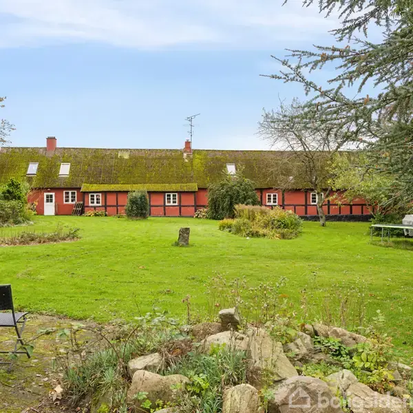 Smukt placeret i det grønne landskab, lige uden for Nylars, ligger denne skønne landejendom, der nu udbydes til salg. Det enorme hovedhus rummer hele 337 kvadratmeter, så der er selvsagt ideelle rammer for den store børnefamilie. Forholdene er tillige gunstige for hestehold, for udhusbygningerne inkluderer blandt andet en stald med tre hestebokse – og der kan lejes hestefolde af naboen. De tilhørende længer byder på rigtig mange bonuskvadratmeter, der giver mulighed for at etablere eksempelvis
