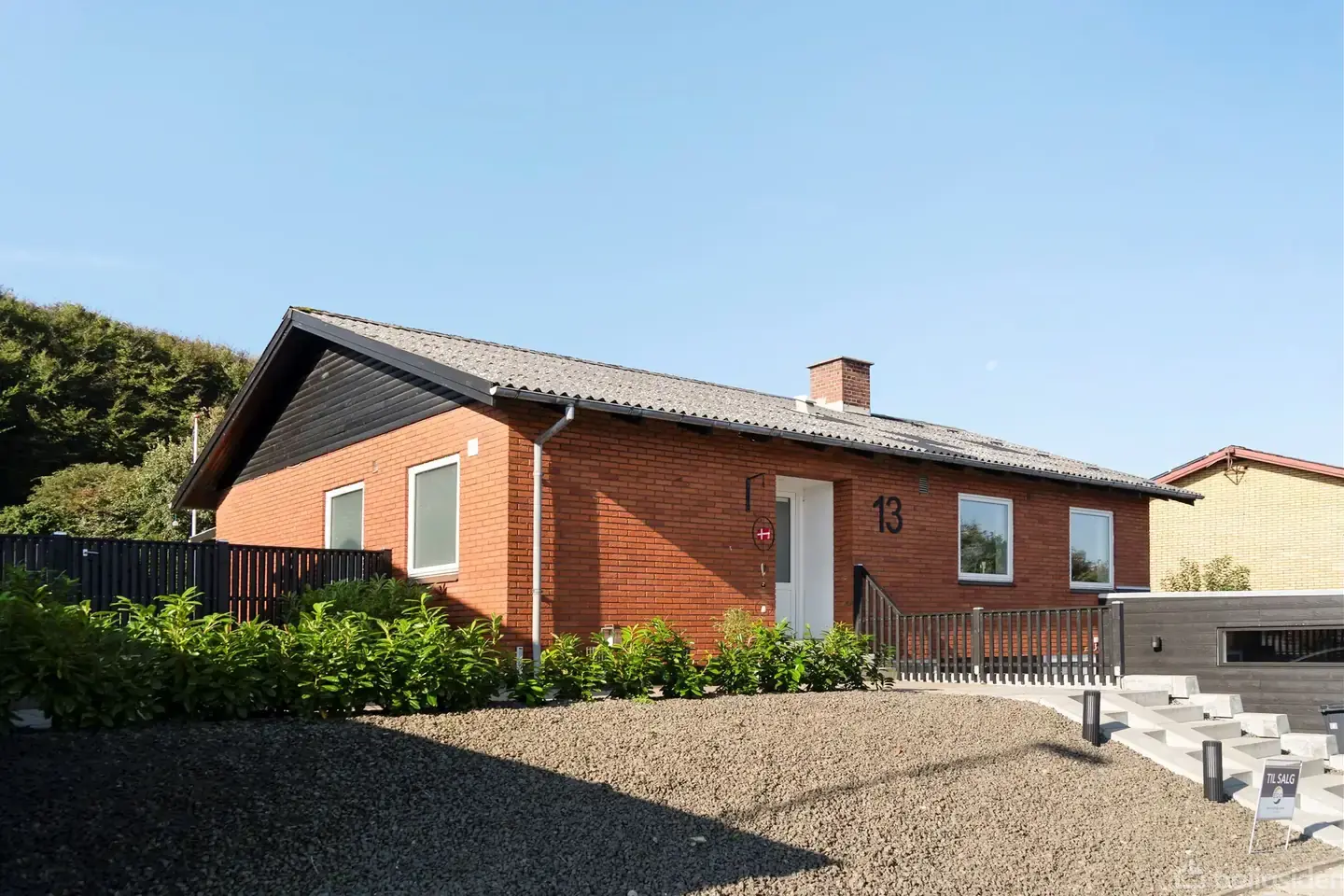 Åbent hus med tilmeldingskrav 3/2 - klik på billede - Velkommen til denne skønne, højtbeliggende villa, som byder på flot udsigt over byen og en dejlig og ugeneret have mod syd. Her kan du nyde den store græsplæne samt et velanlagt terrasseområde, der skaber perfekte rammer for hyggelige grillaftener med familie, børn og venner. Villaen ligger i et børnevenligt område med sti direkte til byens idrætsanlæg og fortov, der gør det nemt og sikkert at gå til både indkøb og skole. Huset er flot renoveret både ude og inde, hvilket sikrer en moderne og velholdt bolig. Forhaven er nyanlagt og byder på gode parkeringsforhold samt en praktisk carport. Der er skiftet til træ/alu-vinduer, og badeværelset er opdateret med stilrene detaljer. De gennemgående gulve binder rummene flot sammen og skaber et lyst og indbydende hjem, der er klar til indflytning. I stueplan møder du en indbydende entré, som giver adgang til et soveværelse samt et ekstra værelse. Husets badeværelse ligger i samme afdeling og er rummeligt og stilfuldt indrettet. Den store stue har et smukt kig ud over haven og er i åben forbindelse med et lyst og pænt køkken, som gør det let at være sammen i hverdagen. Derudover findes endnu et værelse, der kan anvendes efter behov. Under huset finder du en praktisk kælder med tre gode disponible rum, der giver masser af opbevarings- og anvendelsesmuligheder. Denne flotte og velindrettede villa kombinerer moderne komfort med en attraktiv beliggenhed – perfekt for børnefamilien eller dem, der ønsker en indflytningsklar bolig i et roligt og velfungerende kvarter.