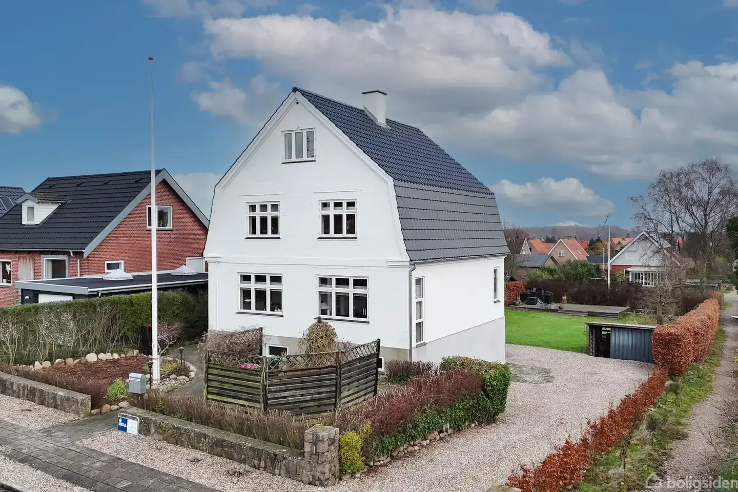Denne charmerende ejendom fra 1935 står utroligt velholdt og gennemført, og det mærkes straks, når man træder indenfor. Her får du et hjem, hvor alle de store poster allerede er taget – inklusiv tag og vinduer – og hvor løbende opdateringer har gjort huset både tidssvarende og enormt indbydende. Det tidligere liv som to-families ejendom betyder, at man får en sjældent god rumfordeling og masser af plads at brede sig på. Stueplan rummer et køkken-alrum med god funktionalitet og plads til hverdagen, mens to sammenhængende stuer skaber et elegant og hyggeligt opholdsrum. Selve køkkenet er ikke lyst, men huset kompenserer i dén grad med et fantastisk lysindfald i både stuer og værelser, hvilket giver en helt særlig varme. Et ekstra værelse og et pænt badeværelse fuldender etagen på praktisk vis. Når man bevæger sig op ad den sindssygt flotte trappe – et af husets helt store æstetiske højdepunkter – åbner 1. salen sig med tre rigtig gode værelser, der alle fremstår både velholdte og lette at indrette. Øverst oppe ligger 2. salen, som i dag er indrettet som et ekstra værelse. Rummet er imponerende flot og tilfører huset en ekstra dimension af charme og karakter. Kælderen på hele 83 m² byder på flere disponible rum, hvor en del ligger i åbent terræn og derfor fremstår mere brugbar og imødekommende end en traditionel kælder. Her får du oplagte muligheder for hobbyrum, opbevaring eller kreativ indretning. Alt sammen ligger det i et dejligt og roligt område tæt på skole, smuk natur og Haderslevs hyggelige gågade. Det er et hjem, hvor sjæl, velholdte detaljer og flotte håndværksmæssige løsninger går op i en højere enhed – og et sted, hvor man med det samme kan mærke, at der er blevet passet godt på tingene.