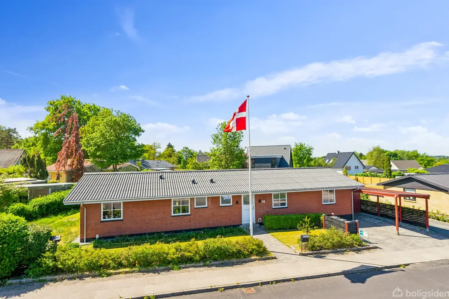 Det er et af de sidste huse på en blind vej, I skal se nærmere på. Der er tale om en pæn etplansvilla fra 1965, der gennem tiden er flot vedligeholdt, så I kan flytte direkte ind. Haven og udestuen er begge skønne, og nede for enden af vejen begynder skov og stisystemer, der kan lede jer mod såvel skole som smukke Vorup Enge. Den blev opført i 1965, den røde og tidstypiske villa, men alderen mærkes mest af alt i udtrykket, for der er kræset for renoveringerne. Bl.a. kan vi nævne, at den tidlige